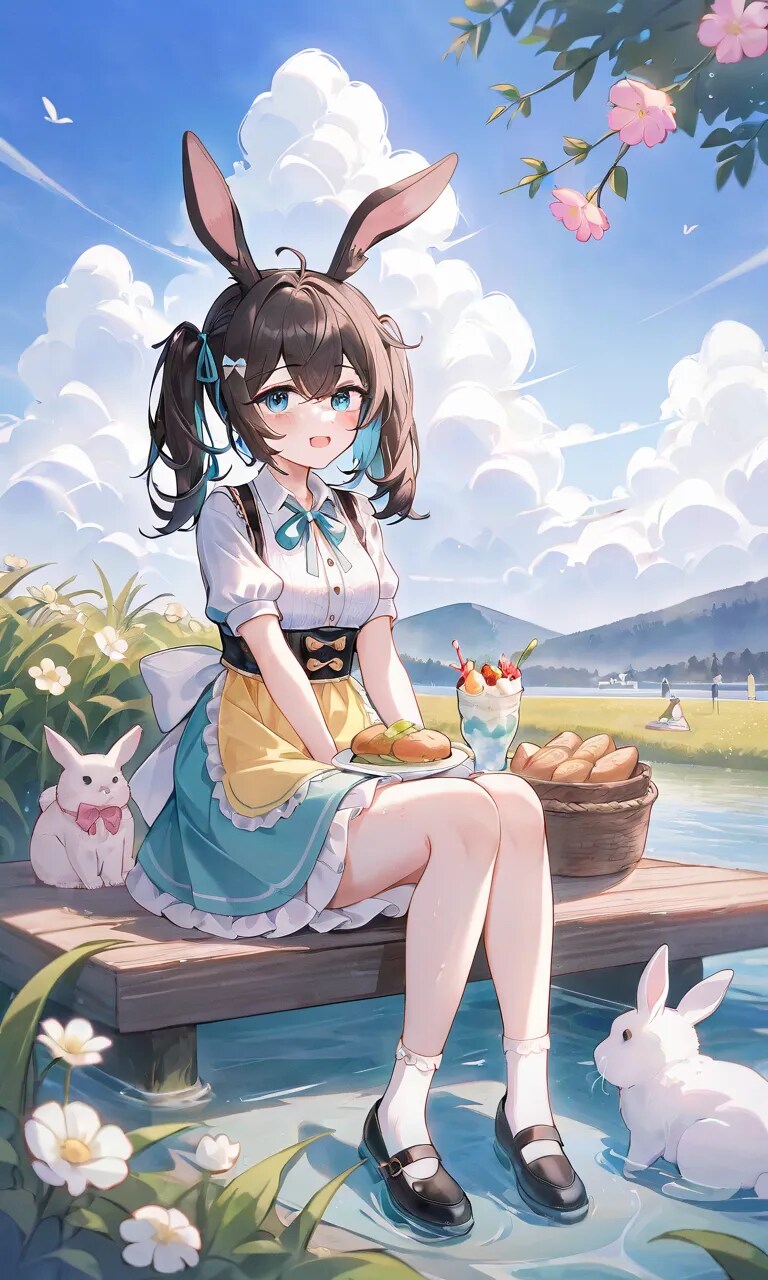 水辺のうさ耳少女withうさぎ