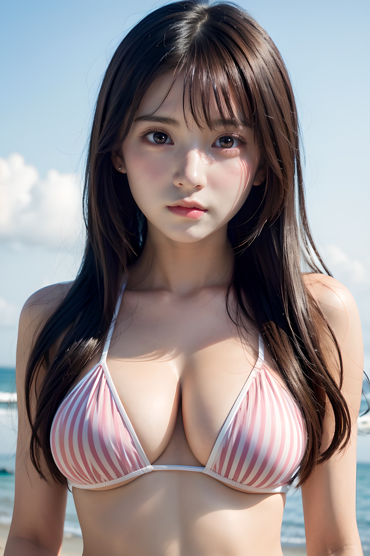 ビキニ画像はおっぱいの大きさがまちまちで2カップぐらい幅がありそうですが、AIが理解するLarge breasts1.1の範囲はそれくらいあるんだと思います。結構アバウトですw