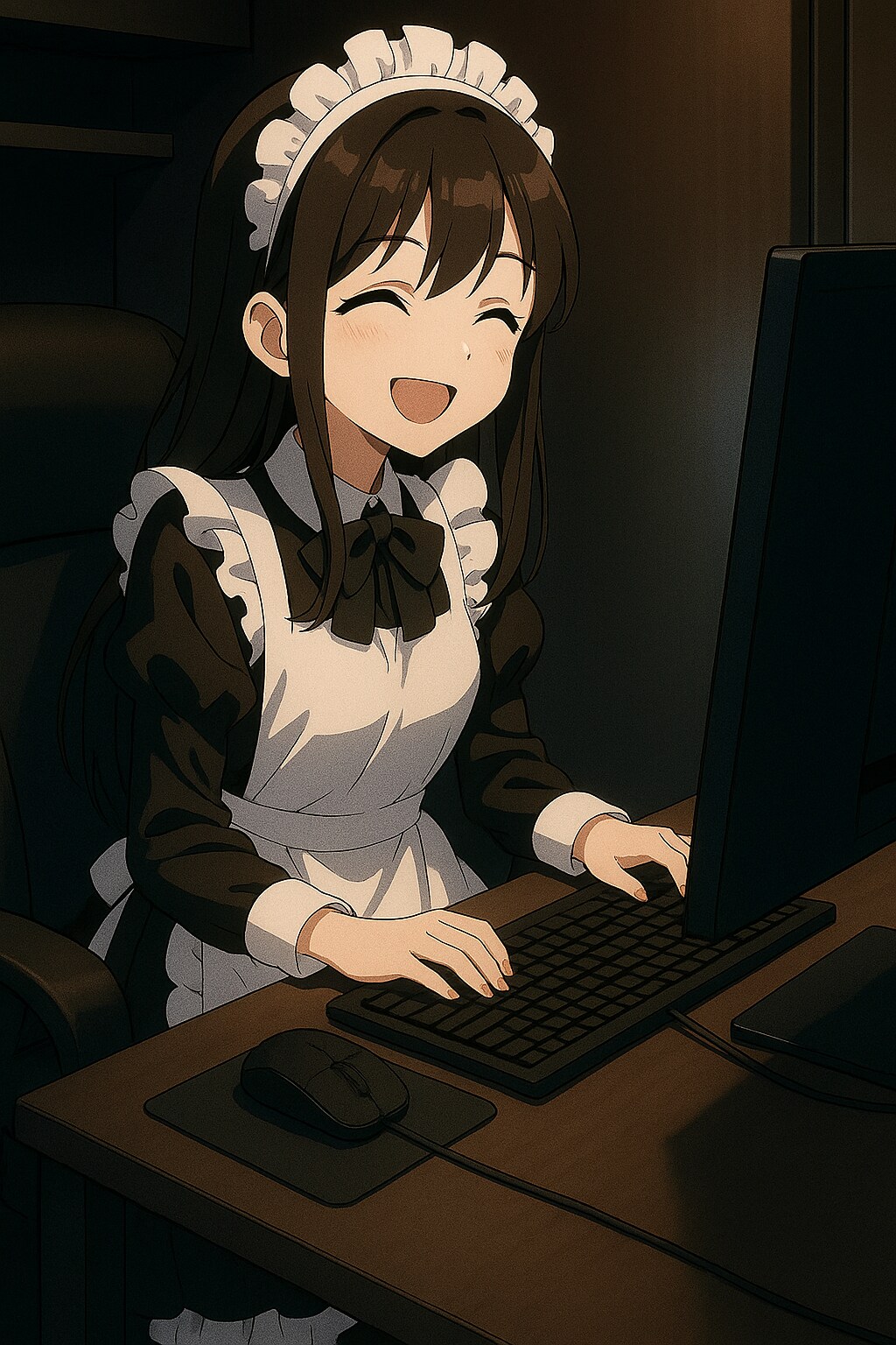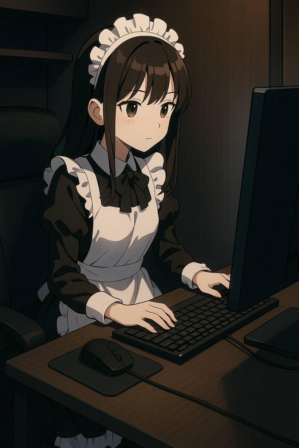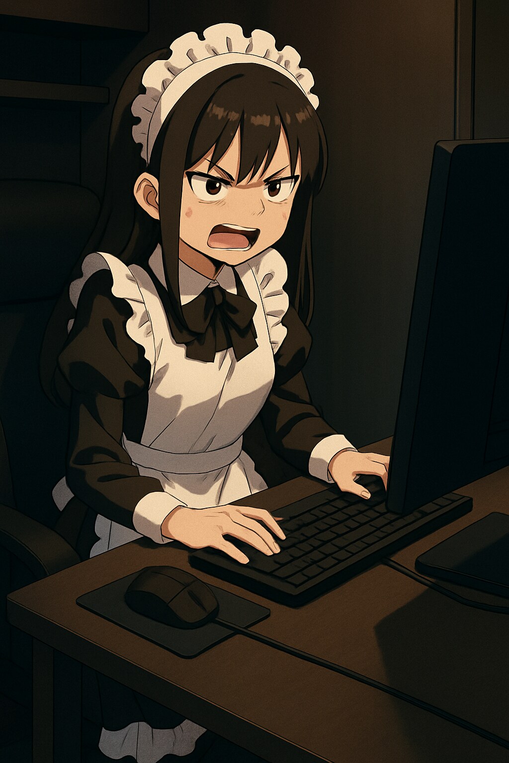 パソコンの処理が重くて機嫌悪くなるメイドちゃん