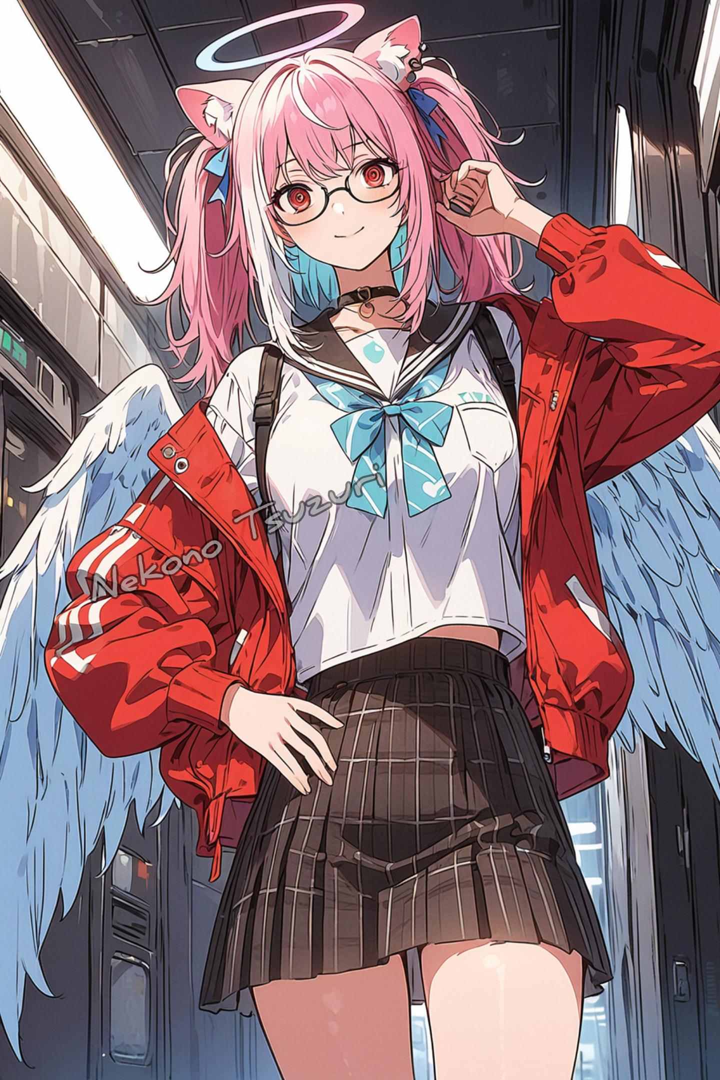 pony tailにするとツインテールになっちゃうんですよね。ちなみに今回は漫画の画風で書いて欲しく、プロンプトに漫画要素を多くしました。次からはponytailにしたいです。何はともあれ、エヴァンゲリオンのアスカと眼鏡の子が合体した感じで最高でした。