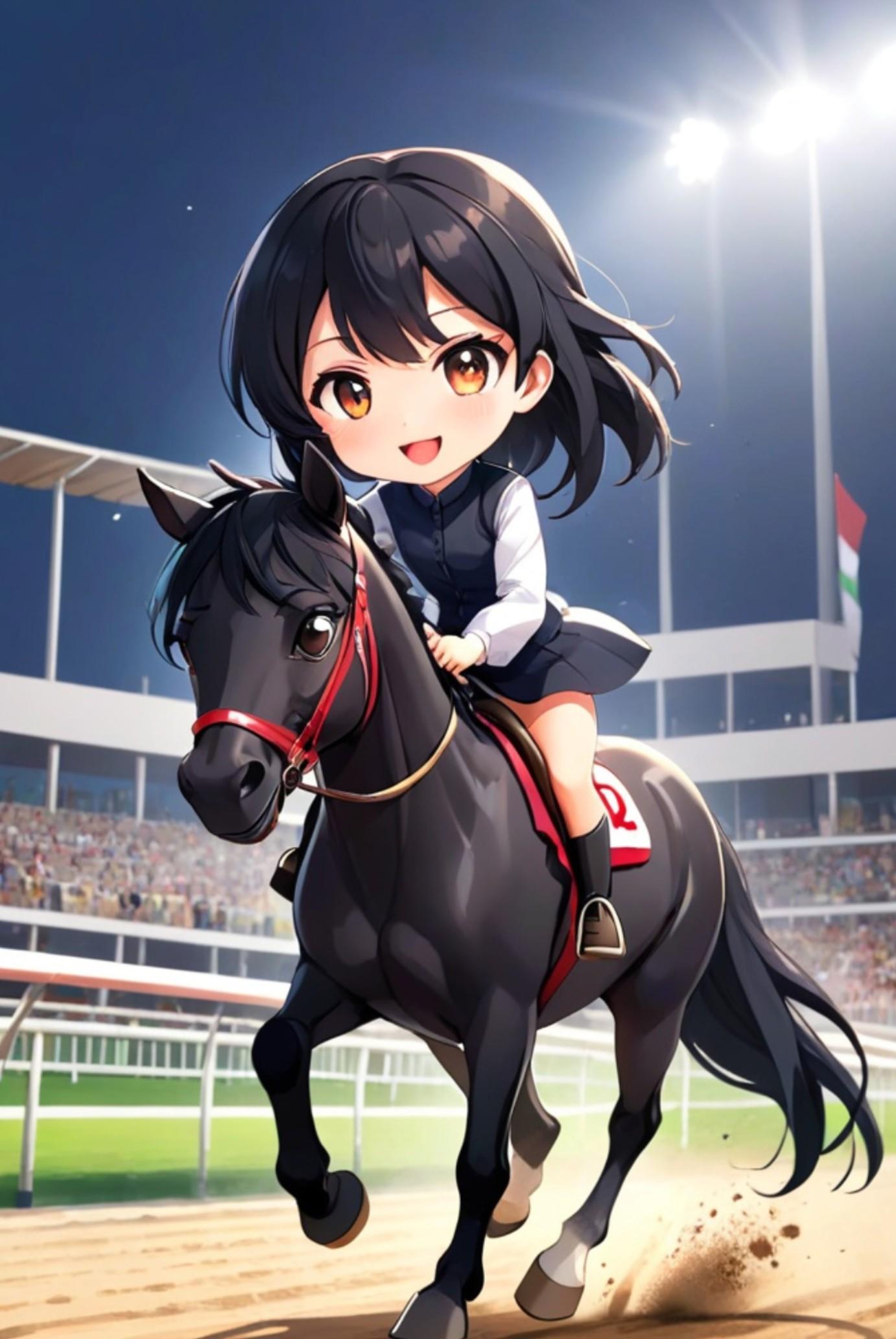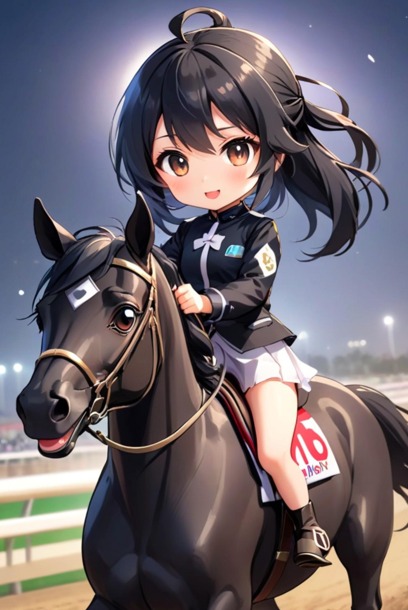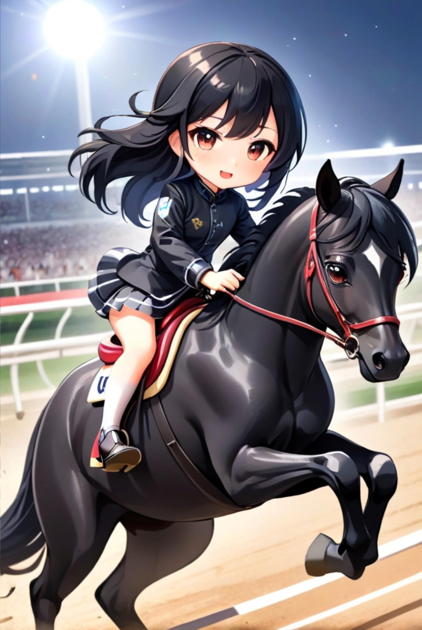 馬に乗る黒髪ちゃん