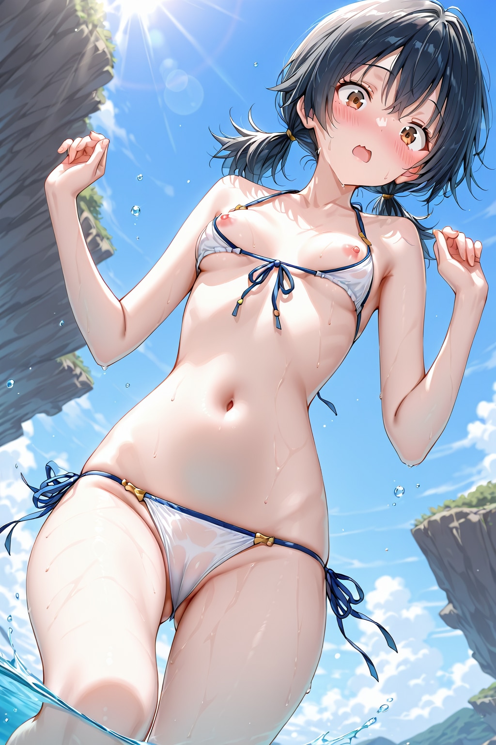 黒髪おさげさん、夏の海のハプニング?