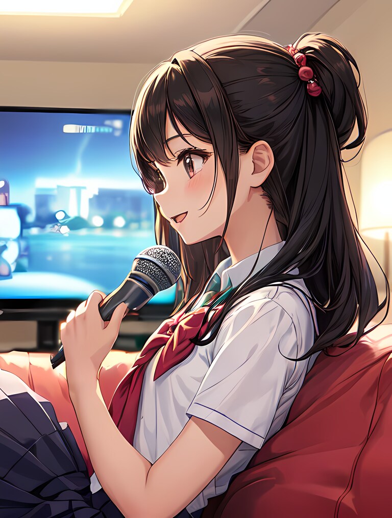 学校帰りに寄り道して一人カラオケを楽しむ女子高生。2時間歌う。
