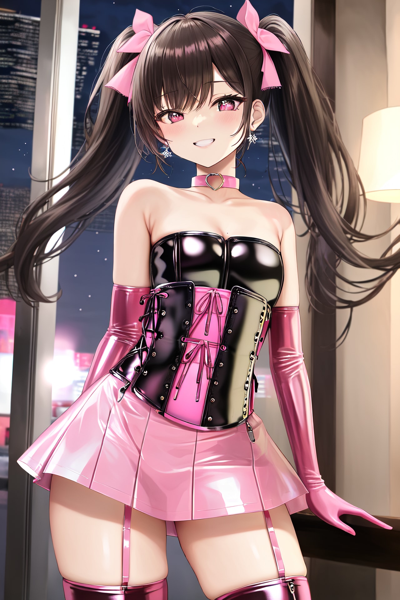 ちょっと地雷感のある黒髪ツインテールピンクボンデージ女王様ちゃん