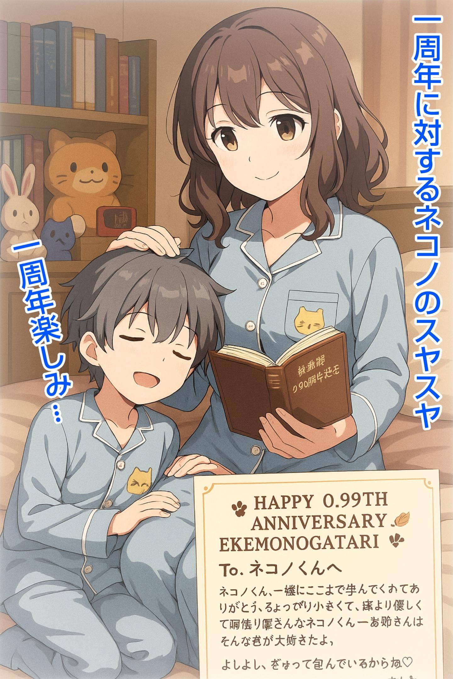 0.99周年というのは、ちちぷい年齢で5月15日で0歳の生命体から一歳の生命体になるわけで、5月16日へのプレということでChatGPTで生成したものです。
