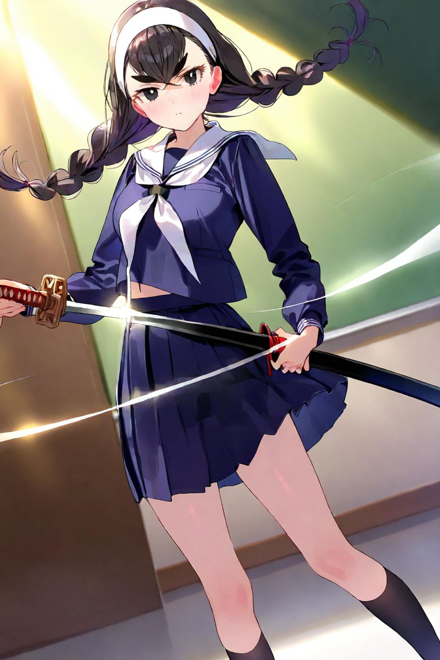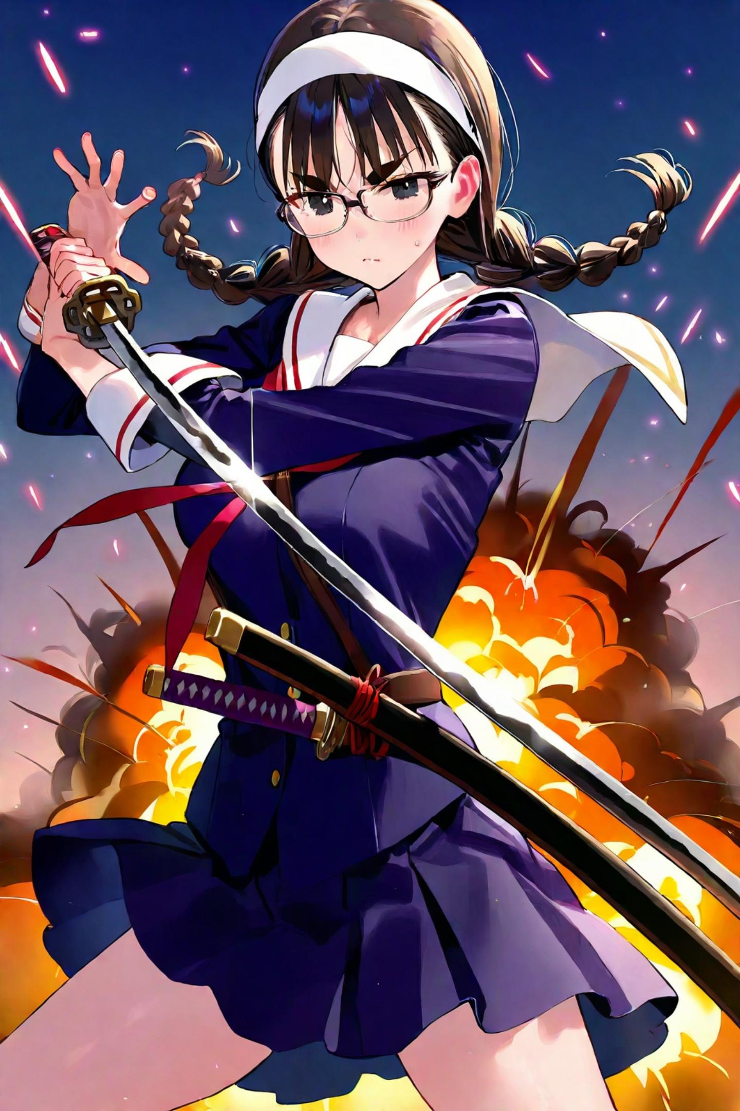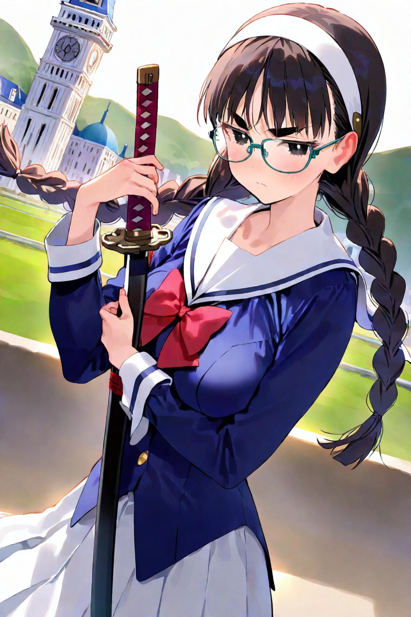 を通して眼鏡三つ編み剣士