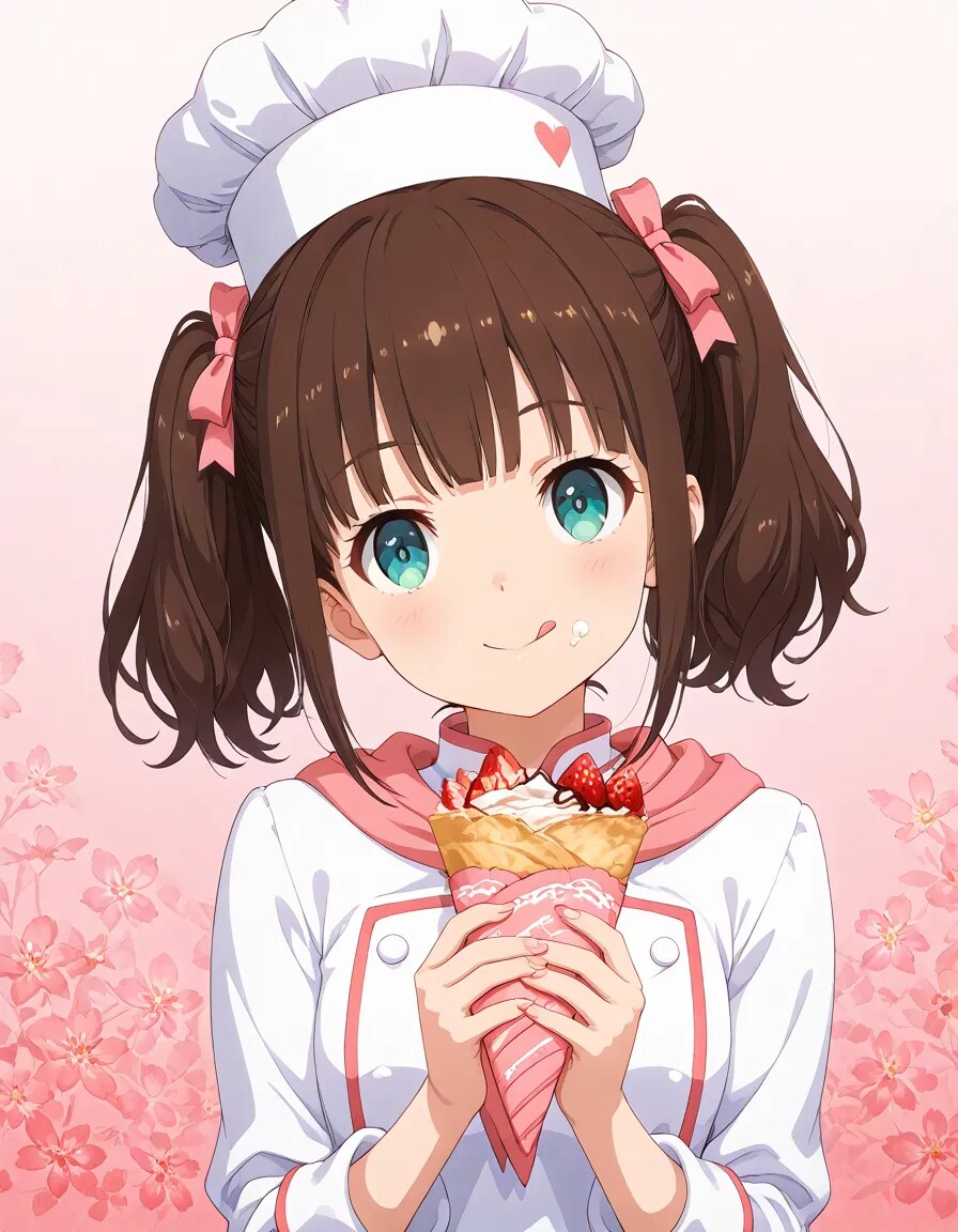 チョコレートクレープがお好き、とのことでしたのではるかちゃん自身も作ってたりするのかなと思い、パティシエ風に。ペロッ。