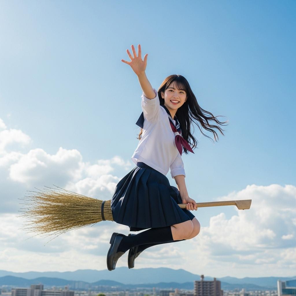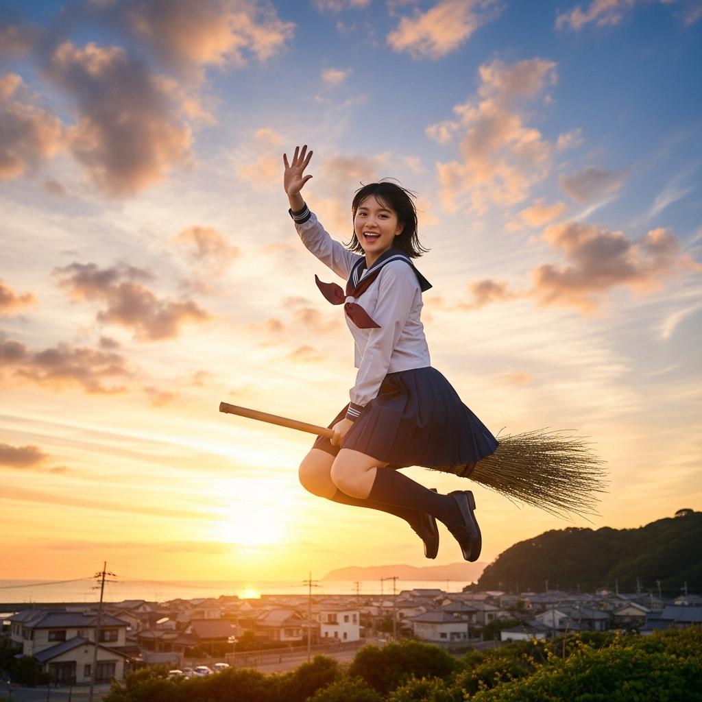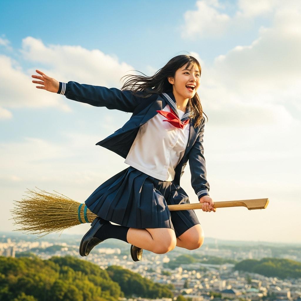 (魔法科、実技研修の花形、『Flying witches 反重力波放出訓練』。落ちないでー)(^^♪