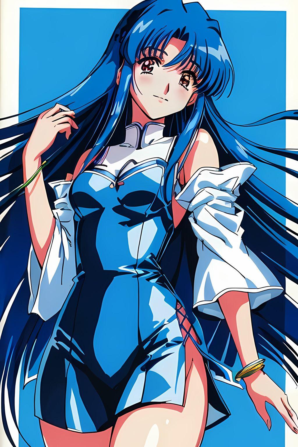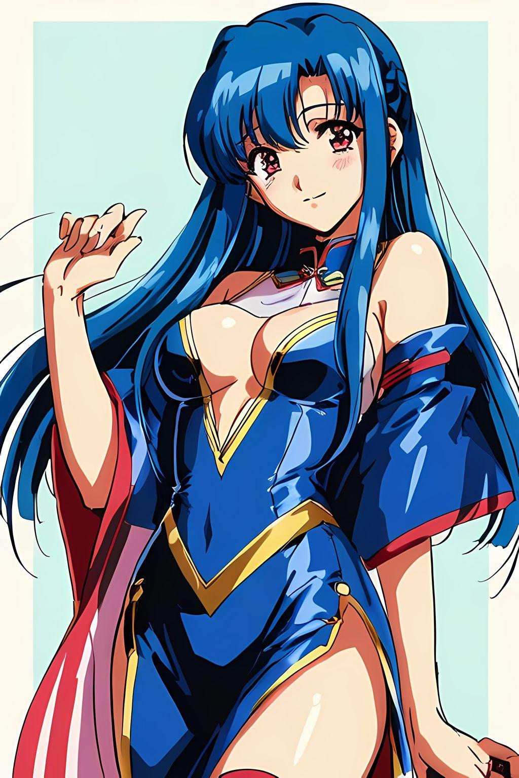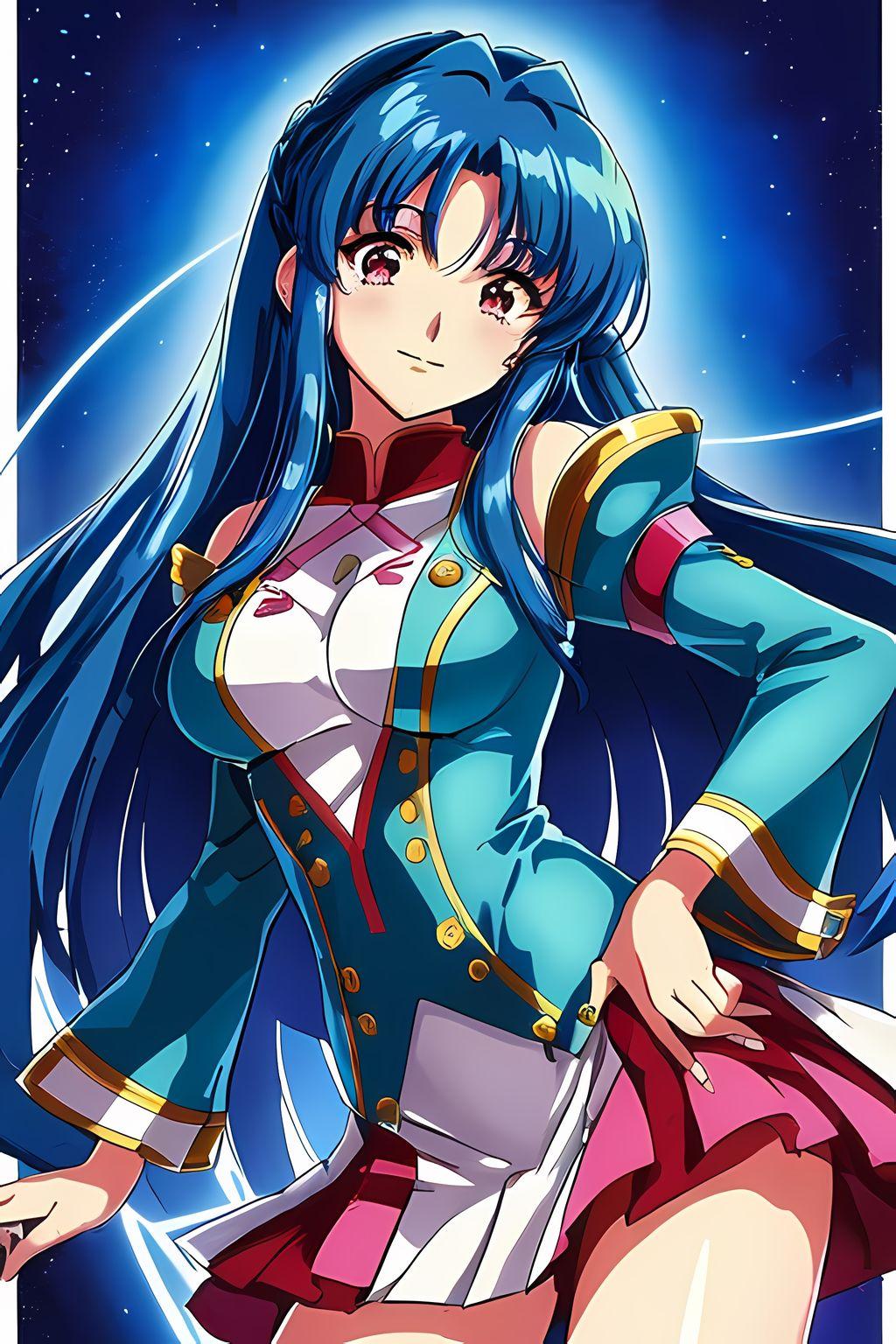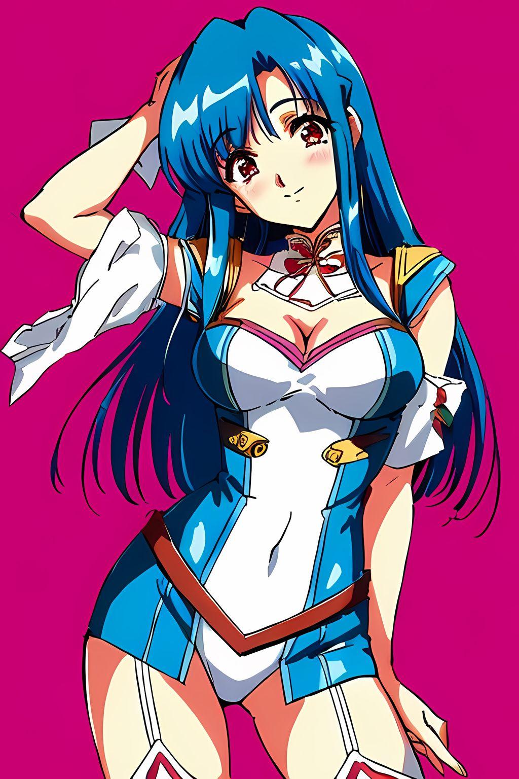 そしていくつも生成して選んでいると、段々と元になるリン・ミンメイ像が崩れていく…ので、とりあえず、青髪ストレートを最低基準にして、今風のSF衣装着せたらこんなかな?って感じになってます(そもそも胸がこんなn)