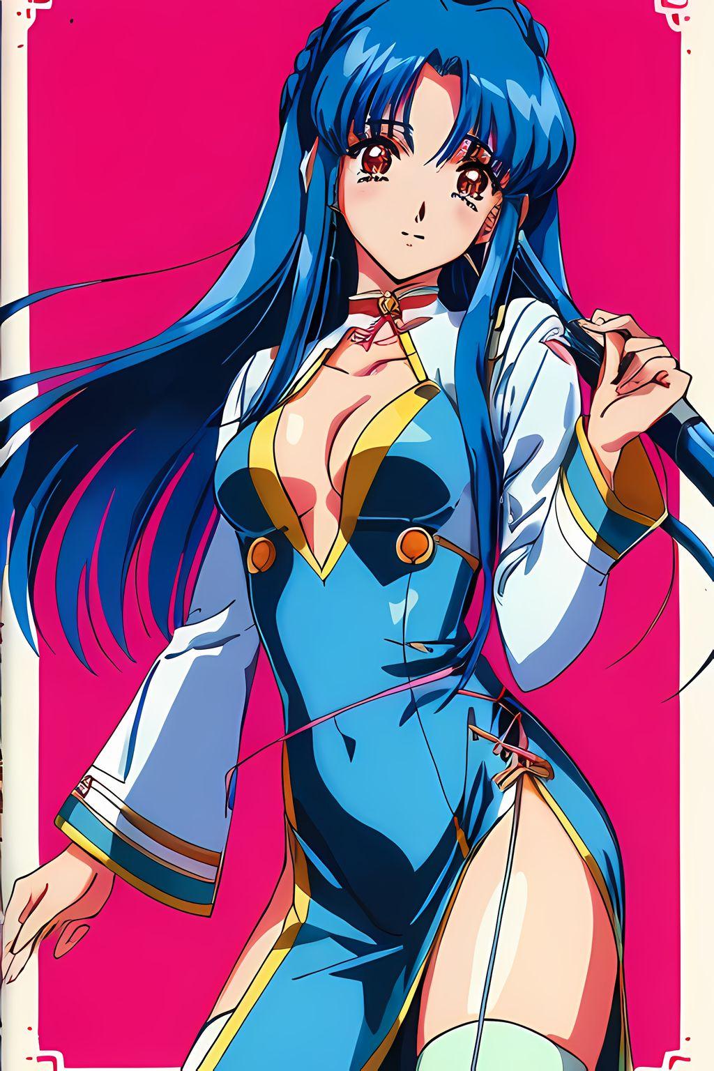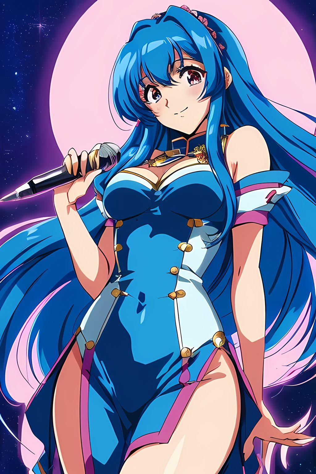 というわけで、超時空要塞マクロスから宇宙の歌姫、リン・ミンメイ…っぽい人。AIさん、1980sでもだめなので1970sまで戻りましたが、それでも現代風にアレンジしたがります。