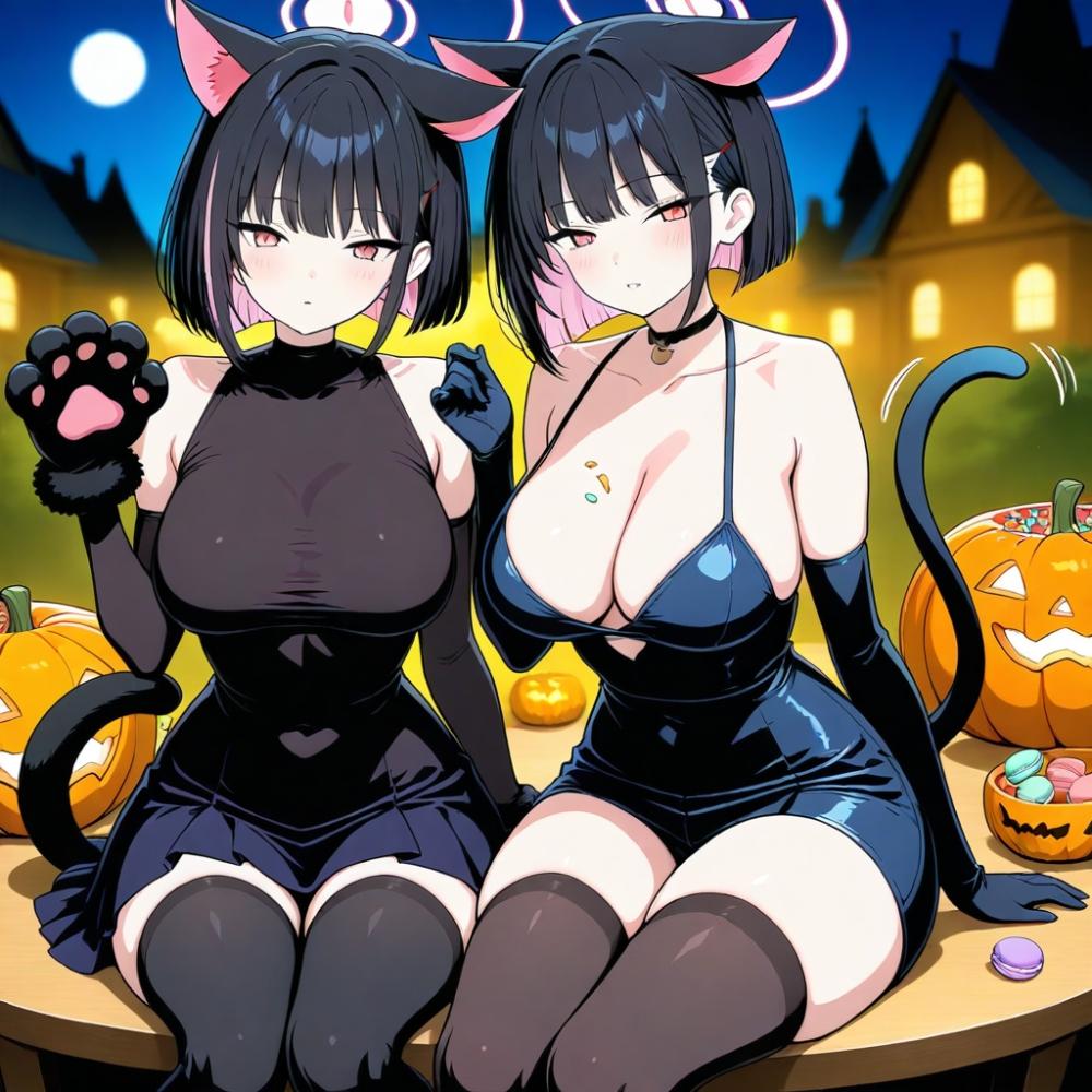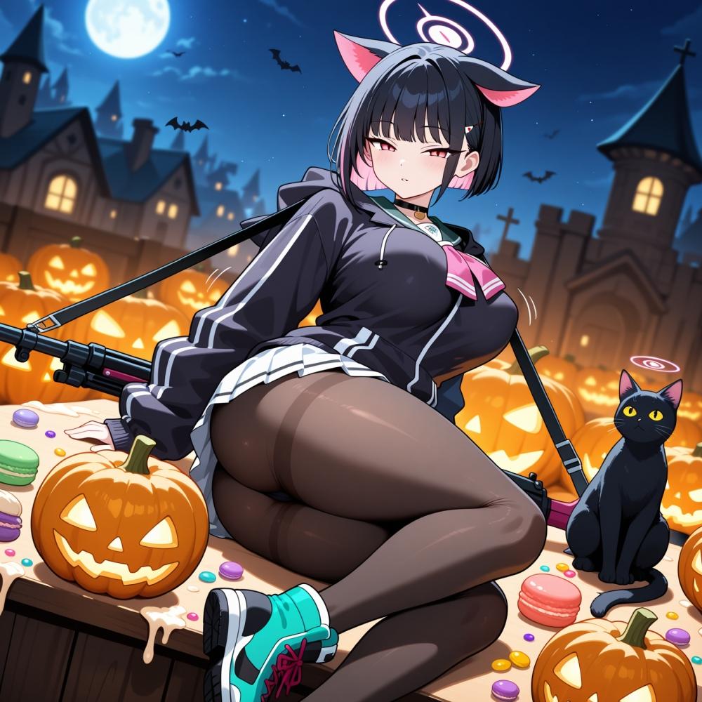 魔女の森ハロウィン黒猫コスプレ人妻