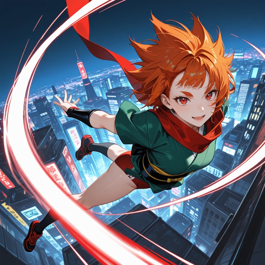 ネオン輝く都会の夜空を飛翔するのは、気持ちよさそうですね♪
