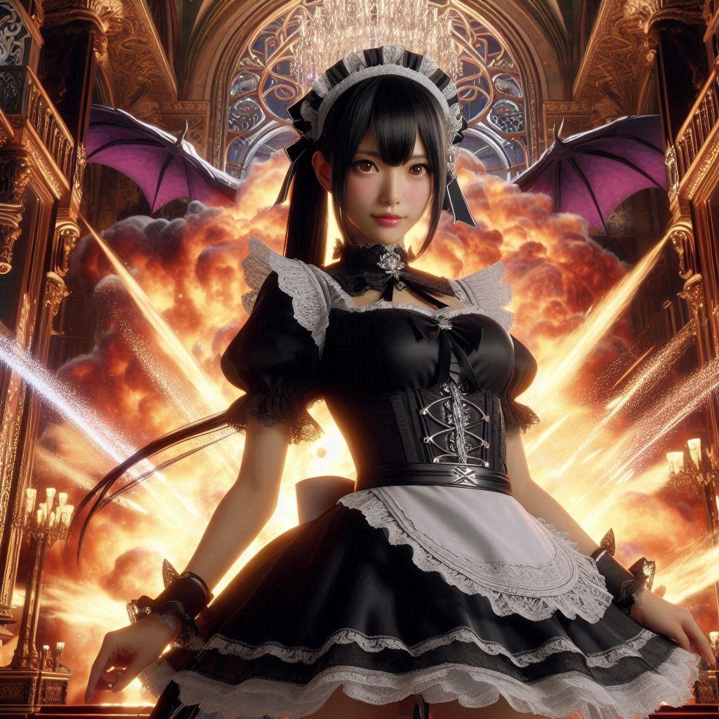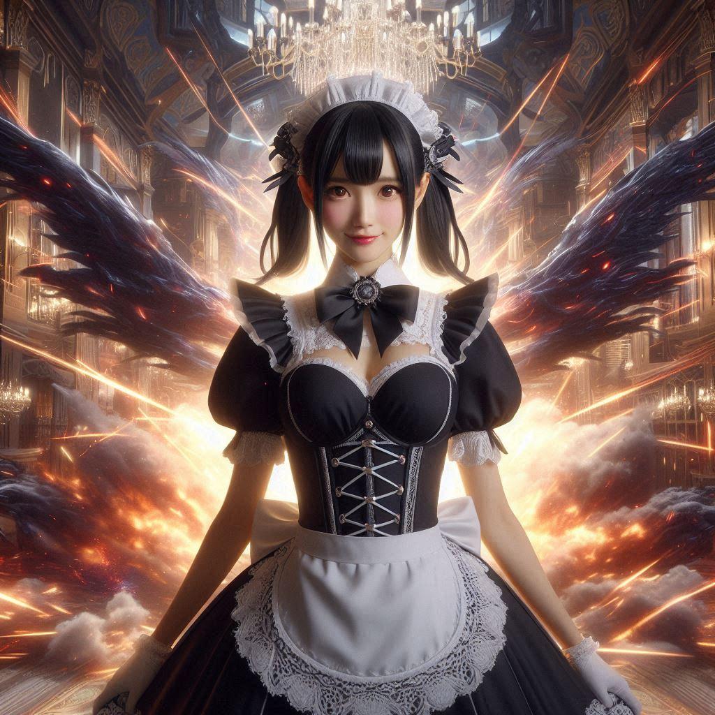 メイド長用のプロンプトを使って魔王に悪堕ちしたメイドにしました。