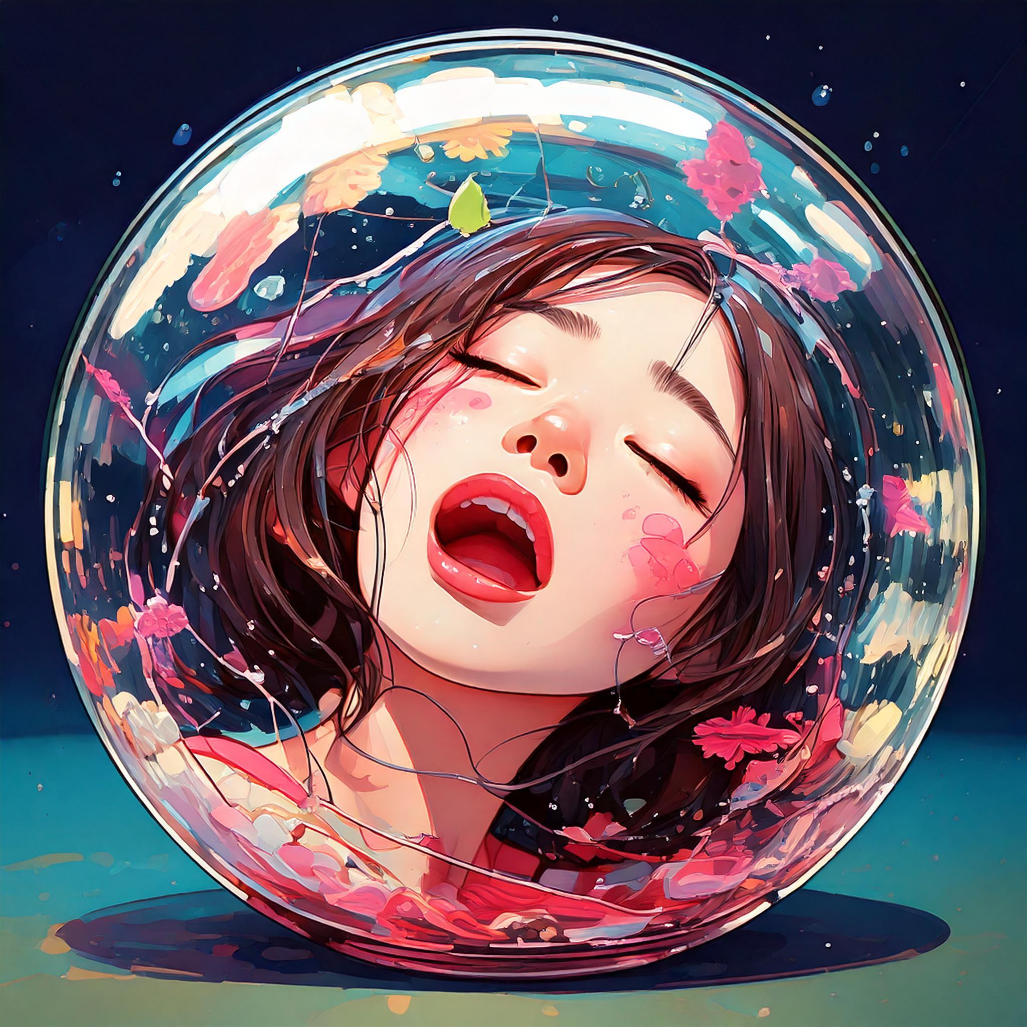 アート、SF、インク、超現実的、ドット絵、空想的な描写、