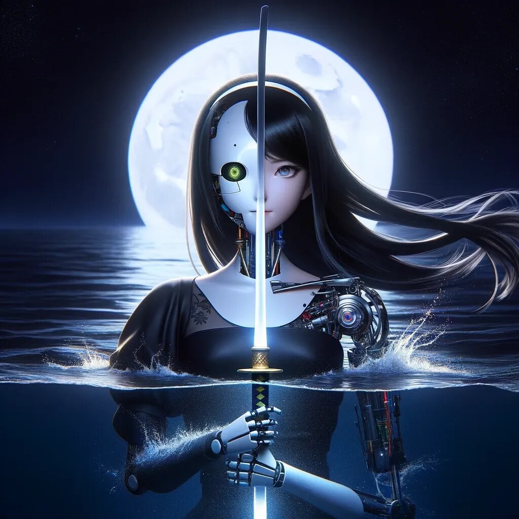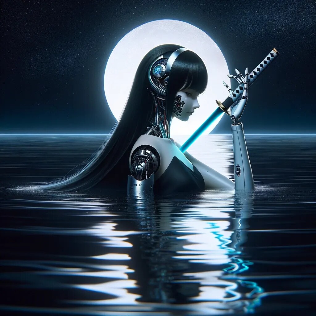 夜の海と月とアンドロイド