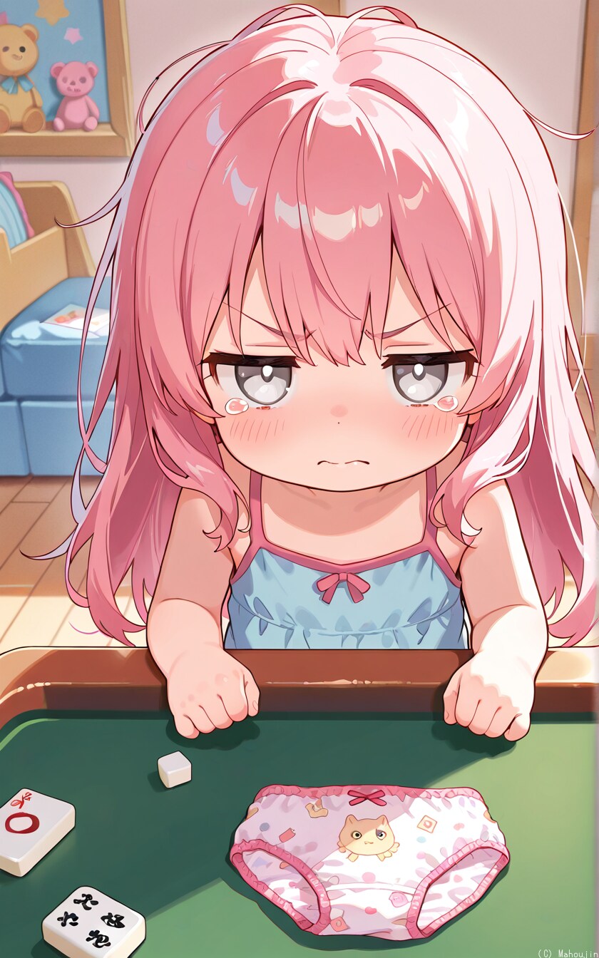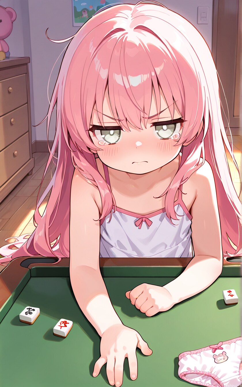 AIピクターズさんのお題が「麻雀」で、麻雀と言えば脱がせる方向、脱がせる方向と言えば以下の時に生成した女の子。という事でこの娘を再び。