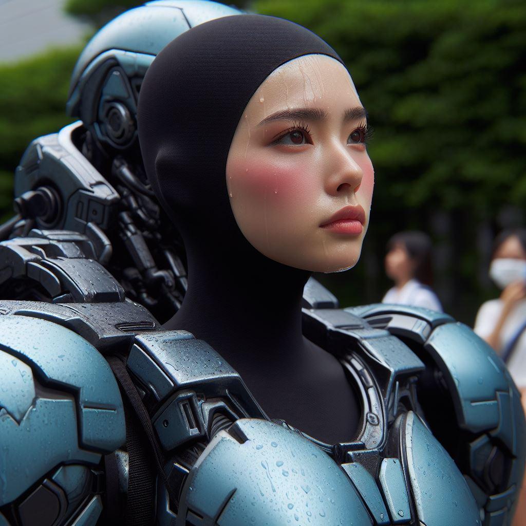 メカコスも濡れる街角