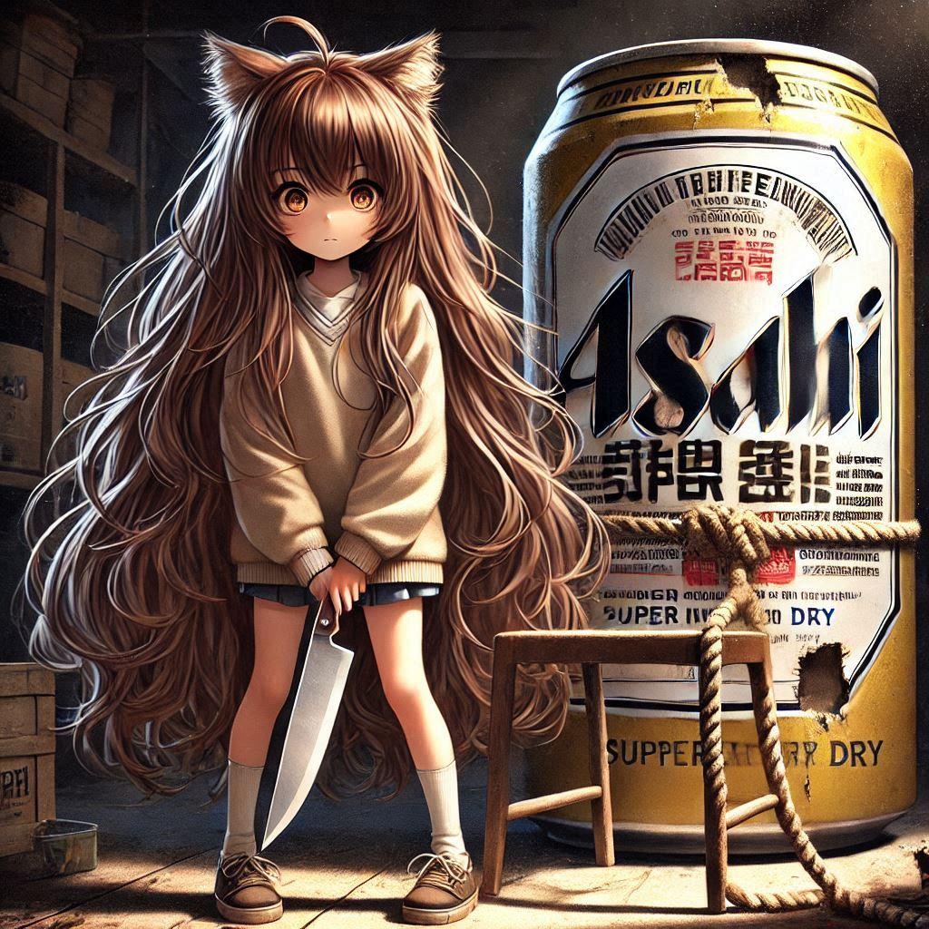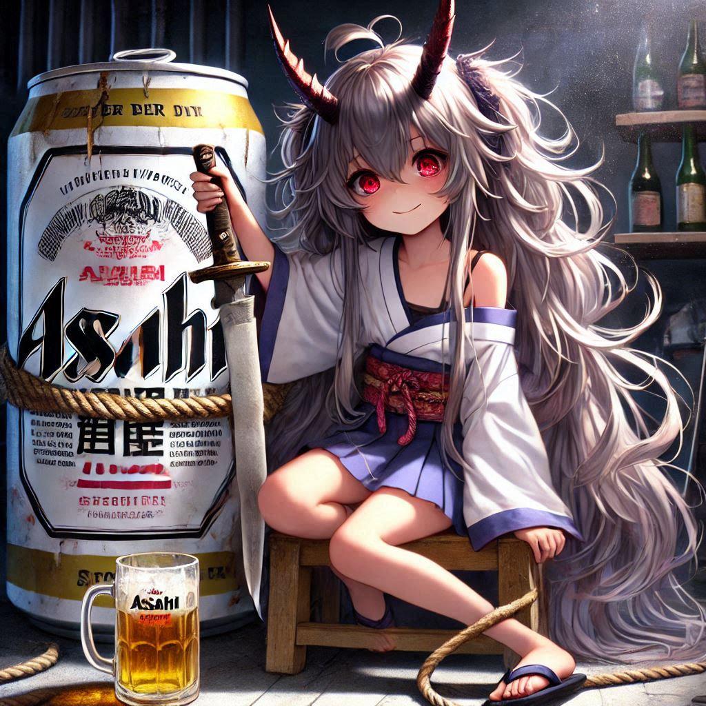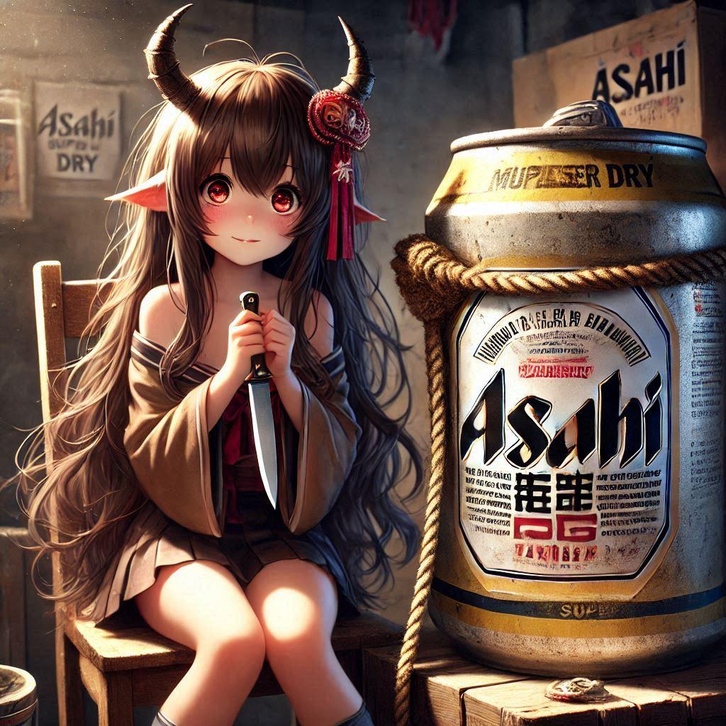 ビール缶を拷問する小さな魔族の女の子