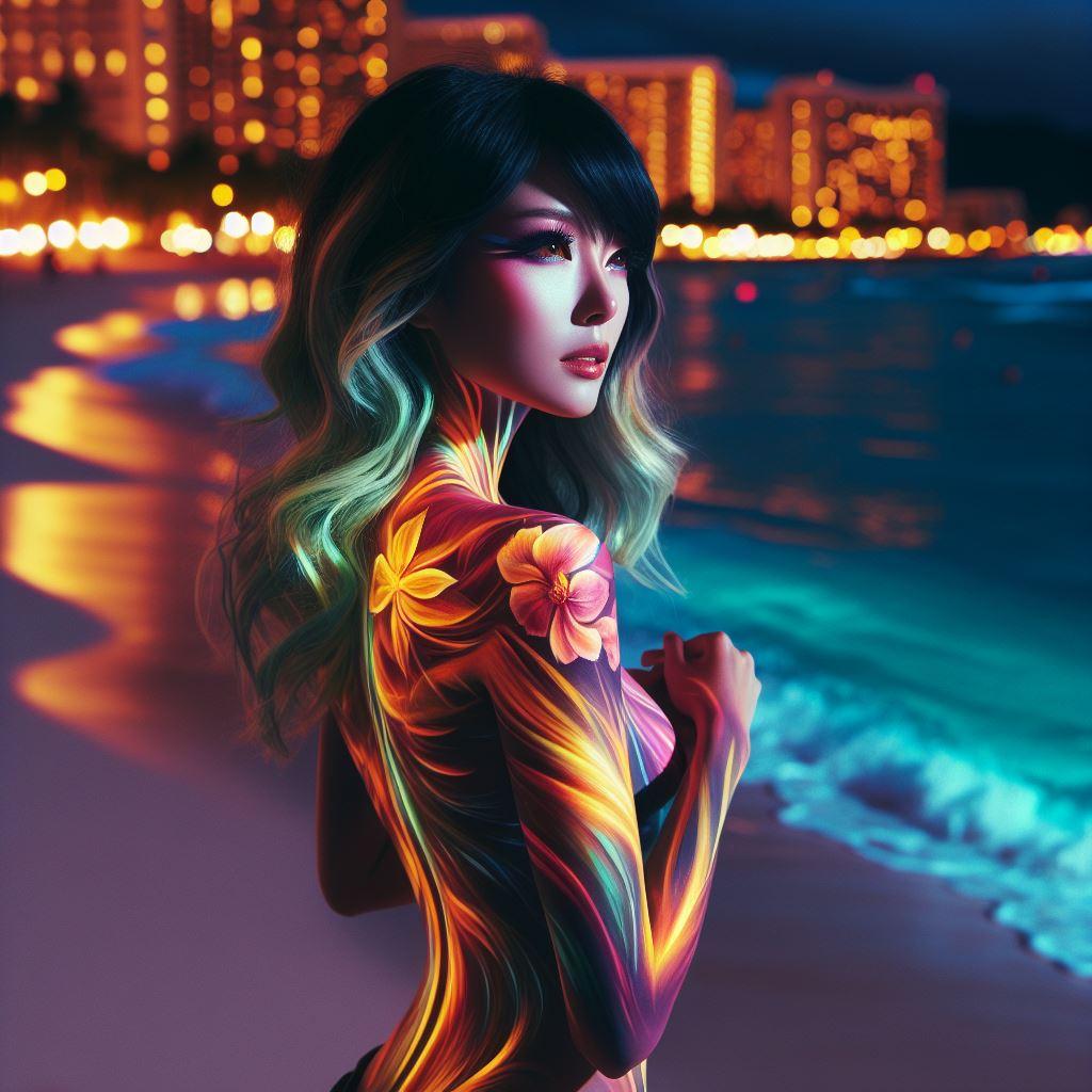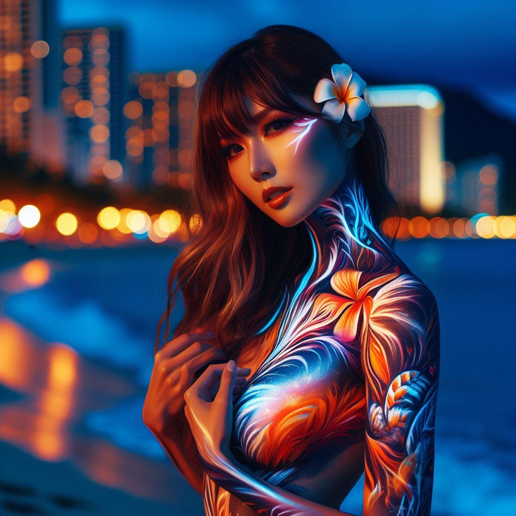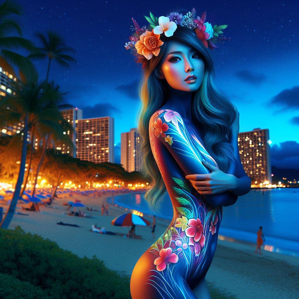 ワイキキビーチでボディペイント1 : https://www.chichi-pui.com/posts/c0d32353-b807-4cfe-adaf-8482521ff132/