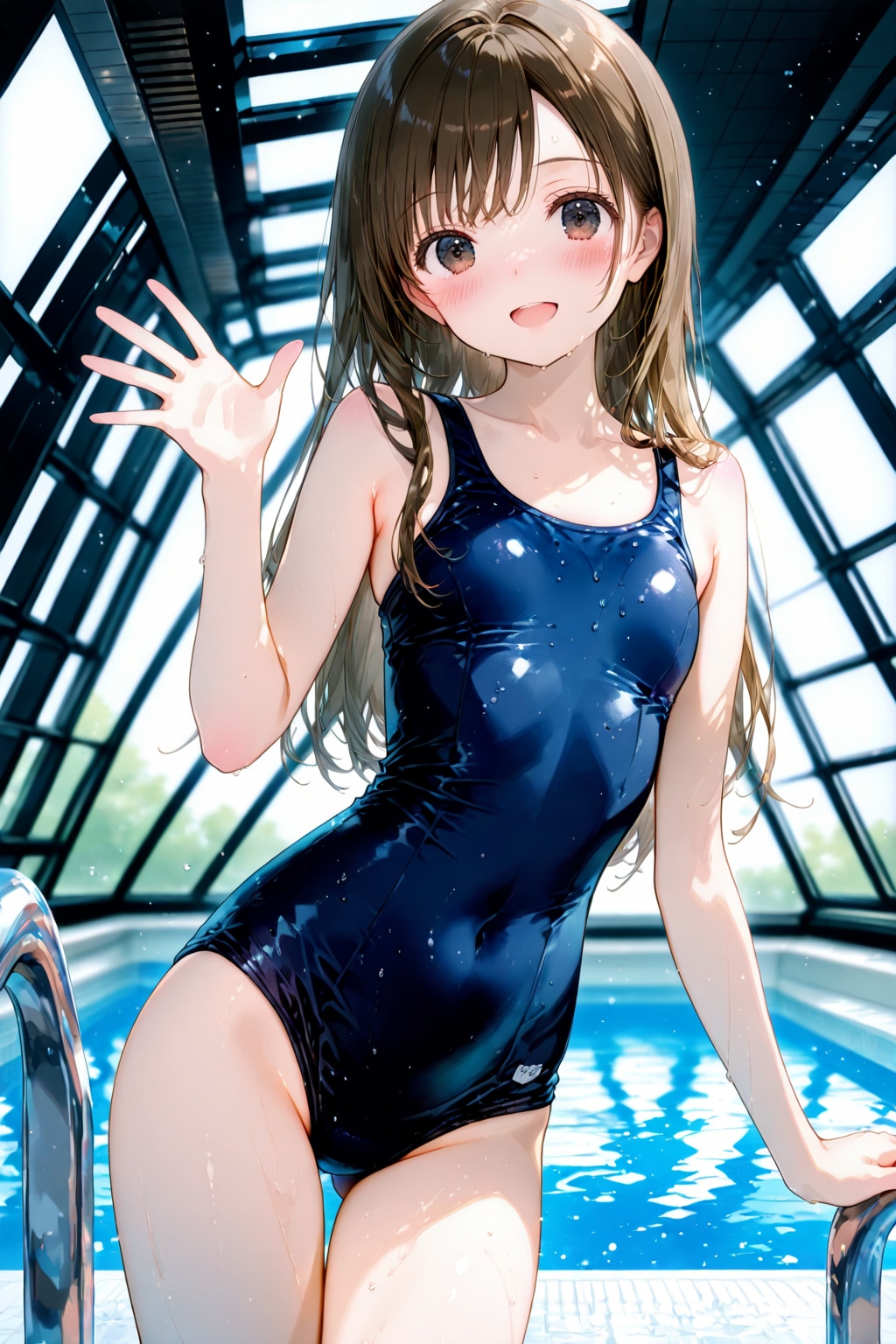 やっぱり例のプールが背景だと