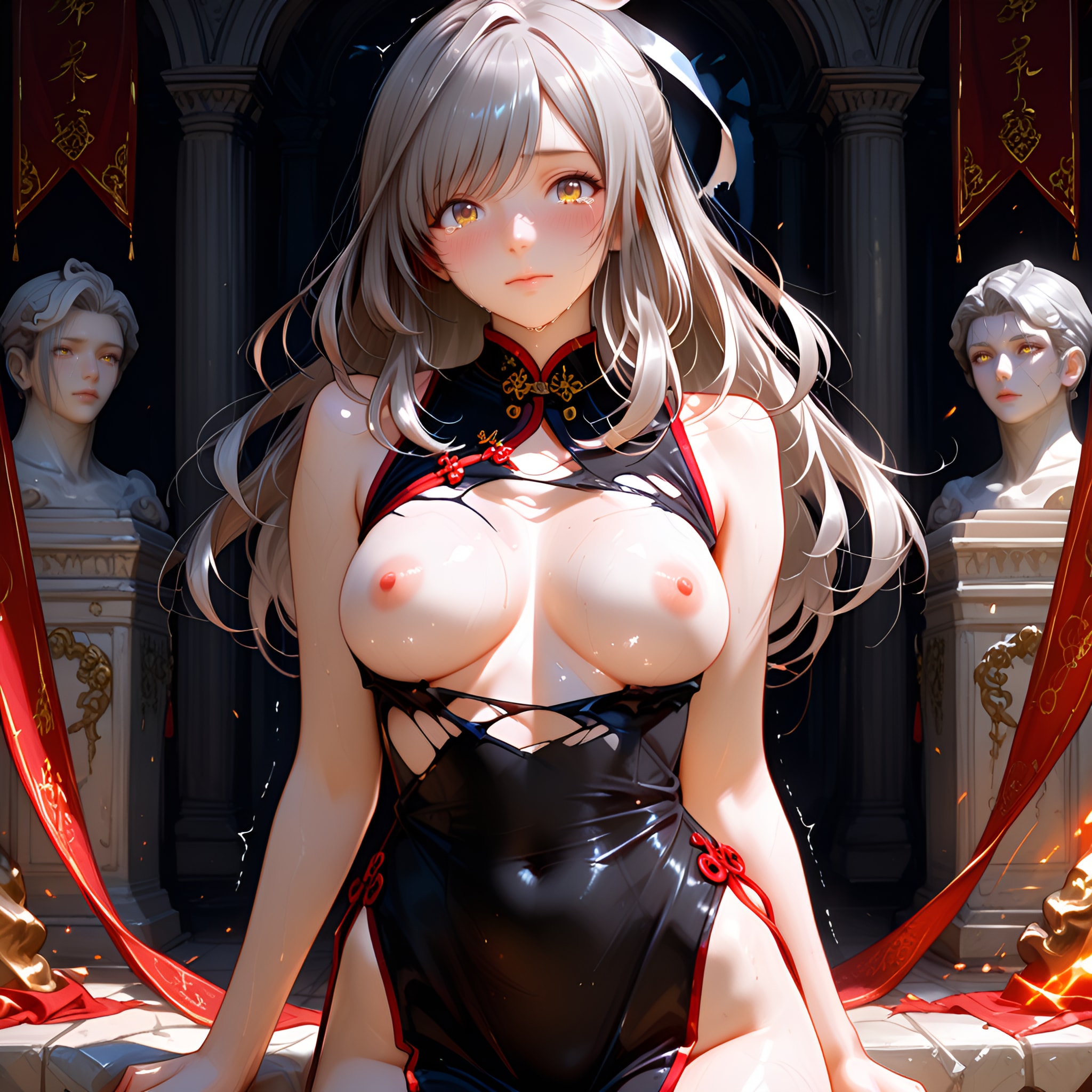 jacket partially removed, heart in eye, burnt clothes, holding fishing rod, kanji, doujin cover, pentagram, tape gag, adjusting headwear, red socks, friends, cloud print, coke-bottle glasses, oral invitation, competition school swimsuit, barbell piercing, gradient legwear, prisoner, blood on breasts, wind chime, carrying over shoulder, tape measure, flaming weapon