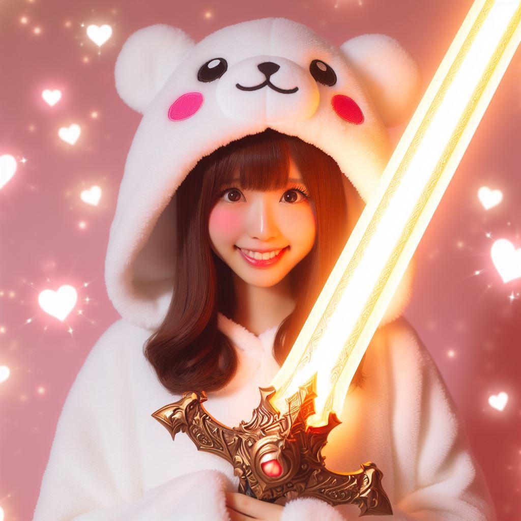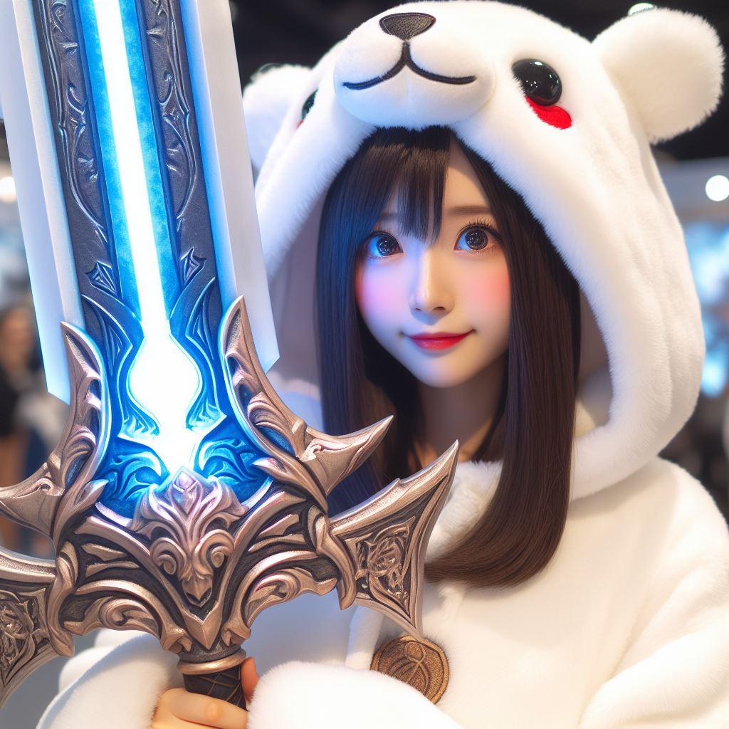 伝説の(剣を構える)ホッキョクグマ(のキグルミを着た女の子)