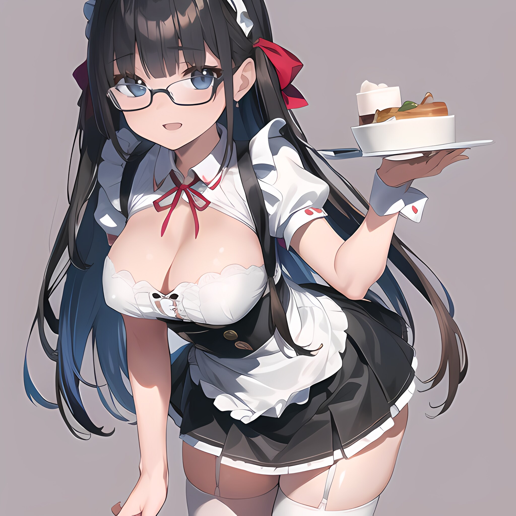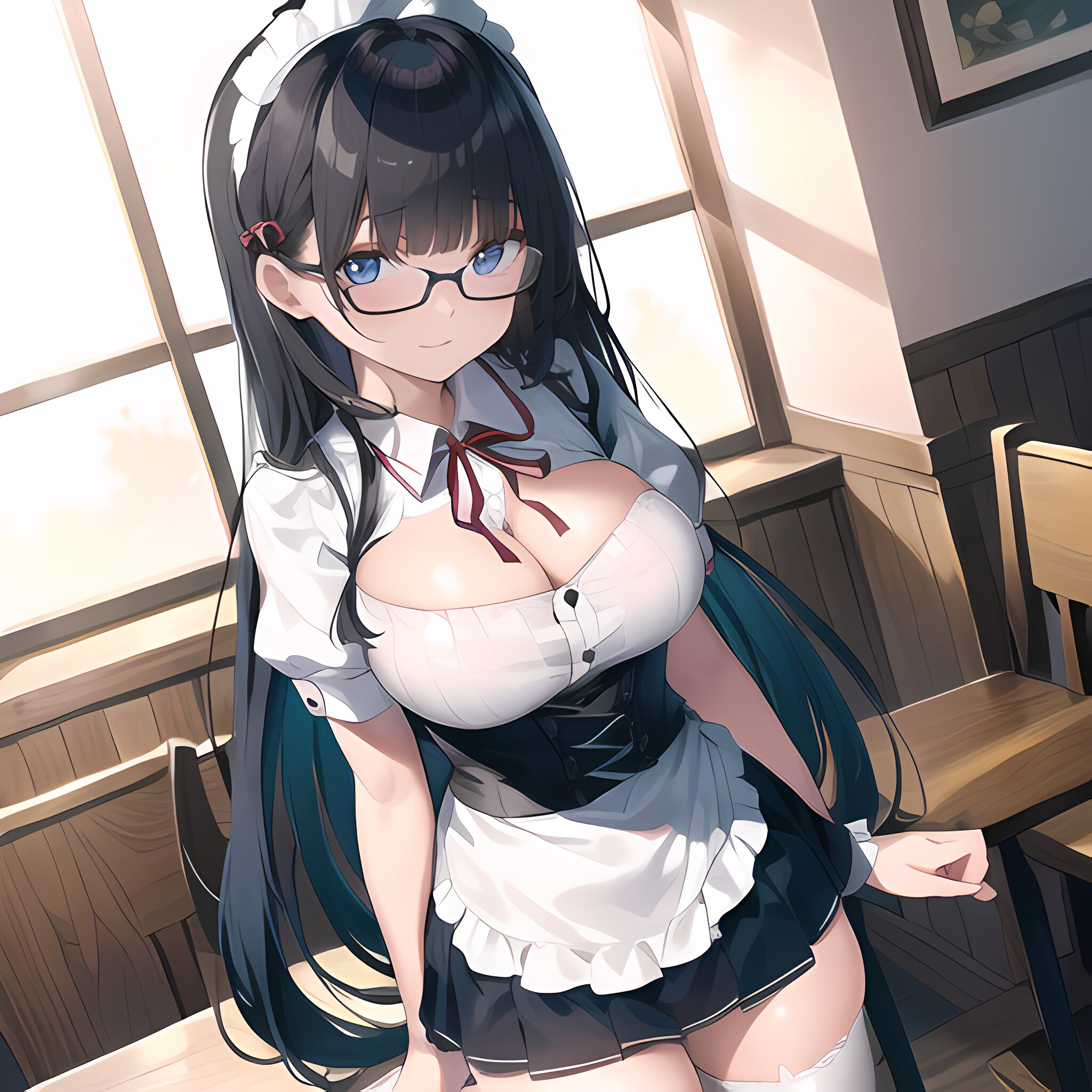女の娘♪ 黒髪ロングメガネっ娘メイドさん♡(10枚)