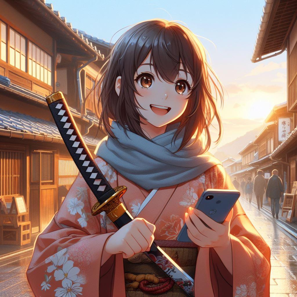映画村の貸出衣装にご満悦