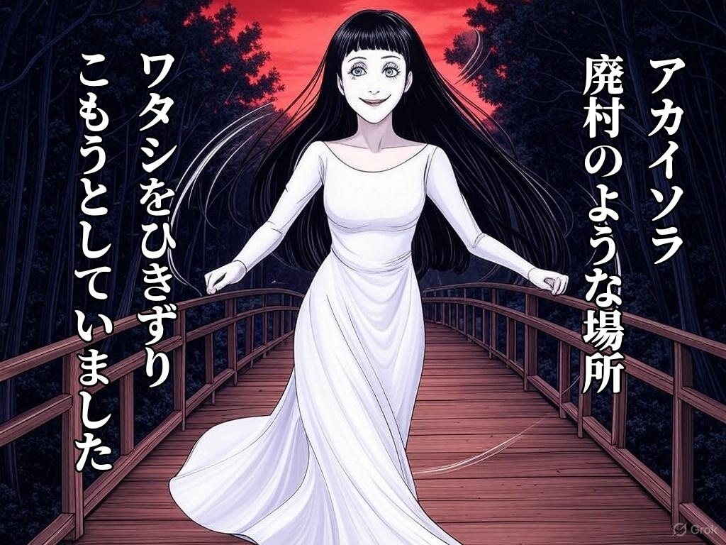 赤い空に、黒く染まった森、廃村、そして、笑う白い服を着た女性、脳の中の虚構が作り出したものならば、それはフィクションで片付けられますが…、私はあの夢を、私ではない何かによって構築された空間だったのではないかと感じるのです。