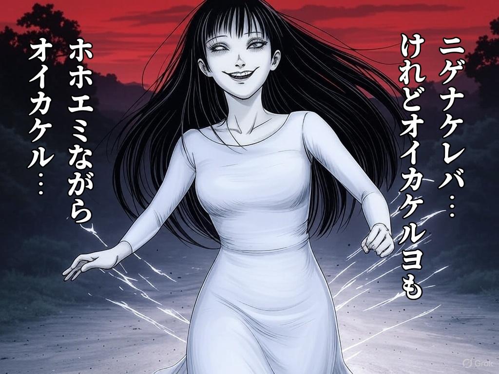 迫り来る、あの女の顔は、そこで途切れました…しかし、カノジョは生物の死の瞬間すらも悼むことなく笑っていたことを私は覚えています。