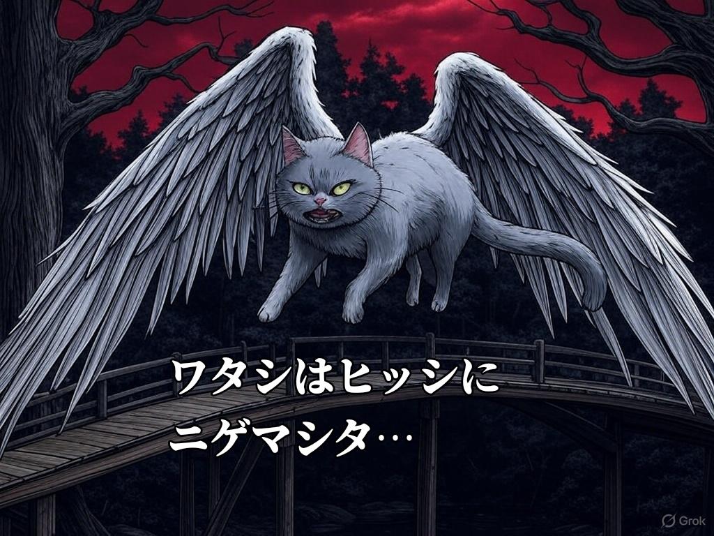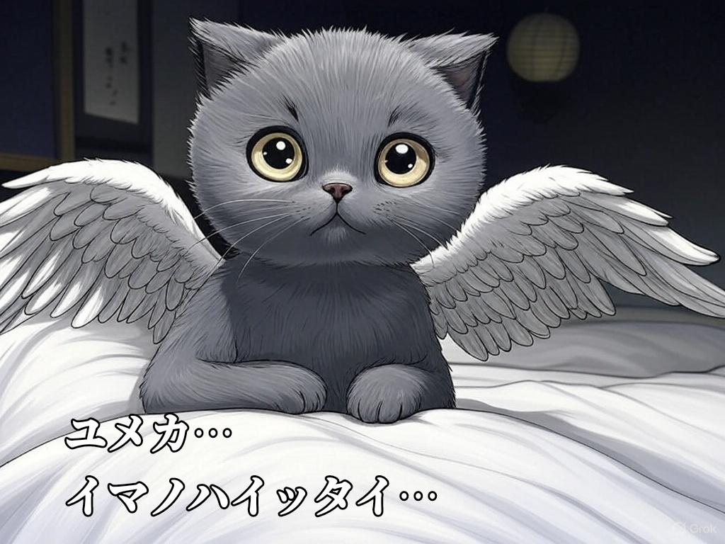 羽など飾りです…猫天使というけれど、 その世界ではズッシリと重くのしかかって飛べないのです。その翼は蝋でできていたのでしょうか…わかりません。