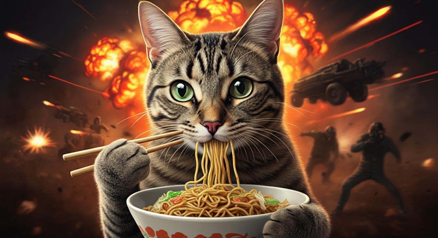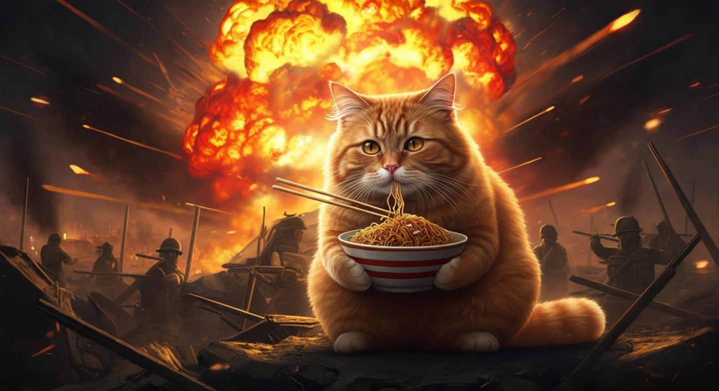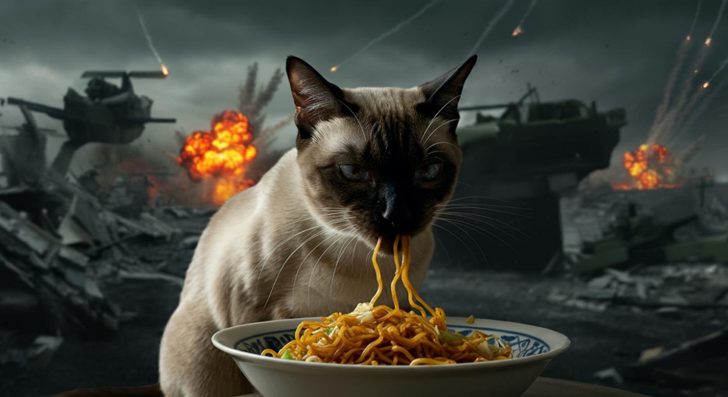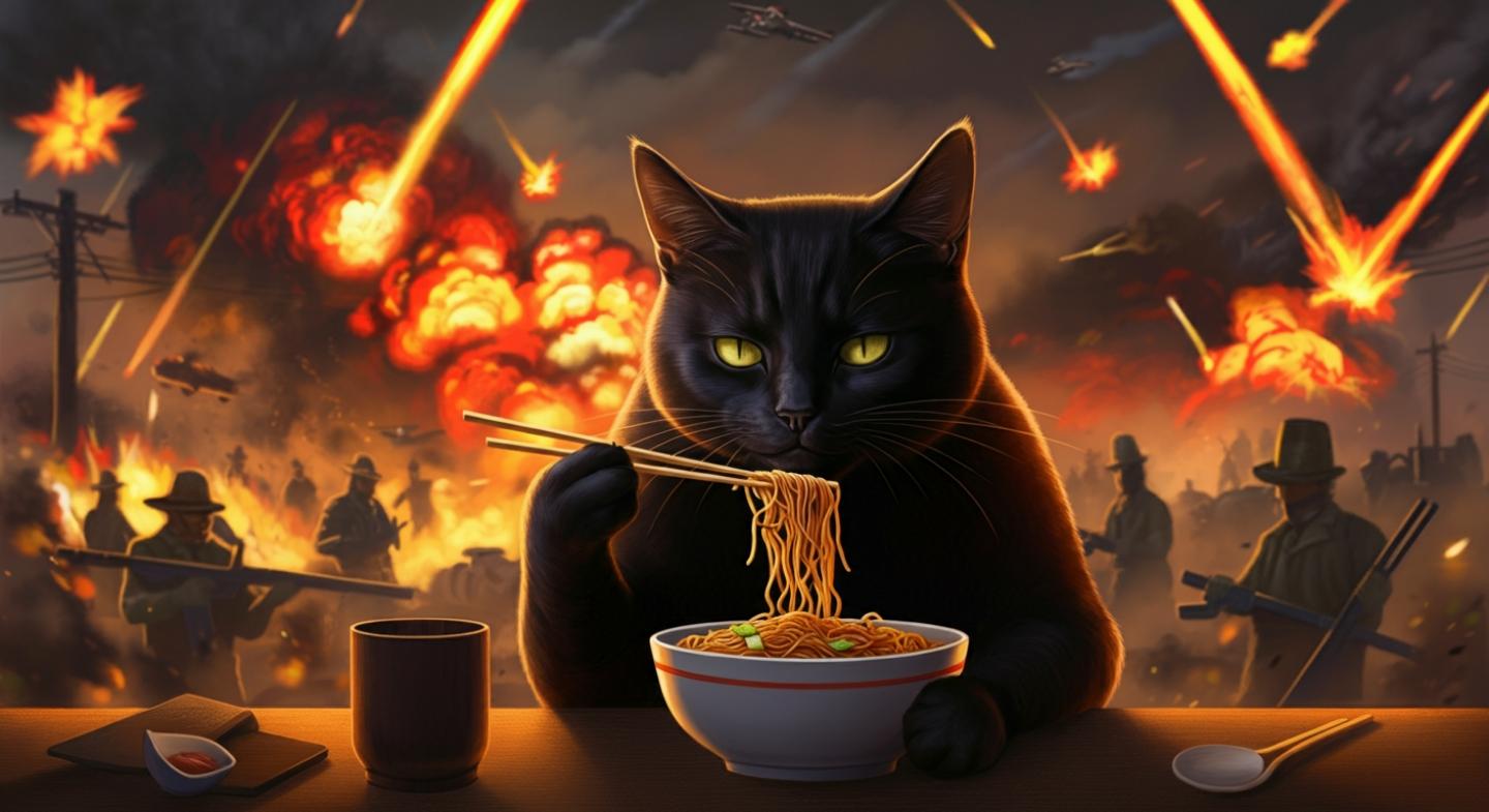 それは人間的な身勝手な価値観ではないだろうか。猫は啜りながら、無関心を装いつつも、背後で人間たちが戦争をして、争っている。