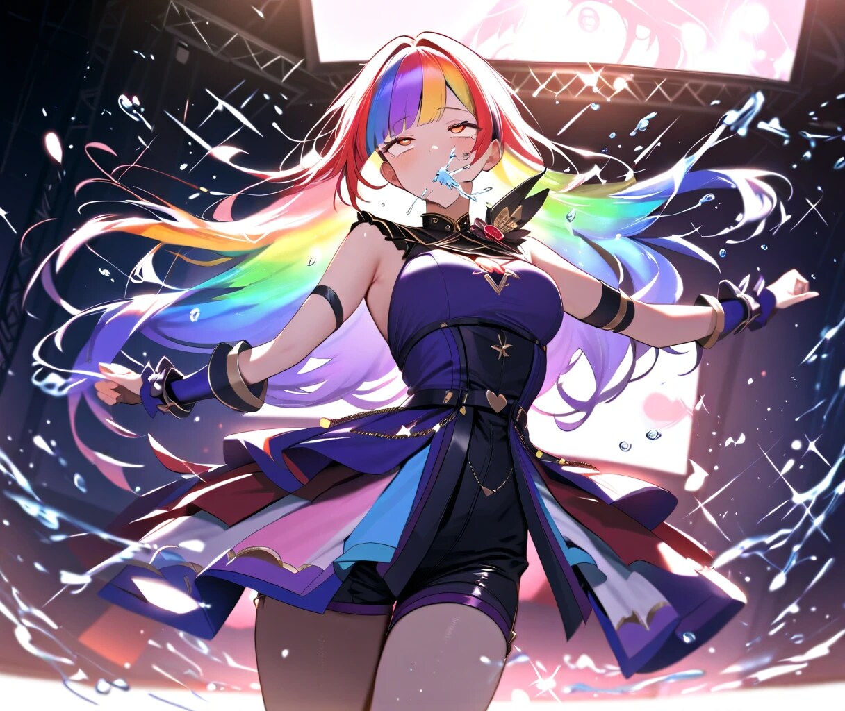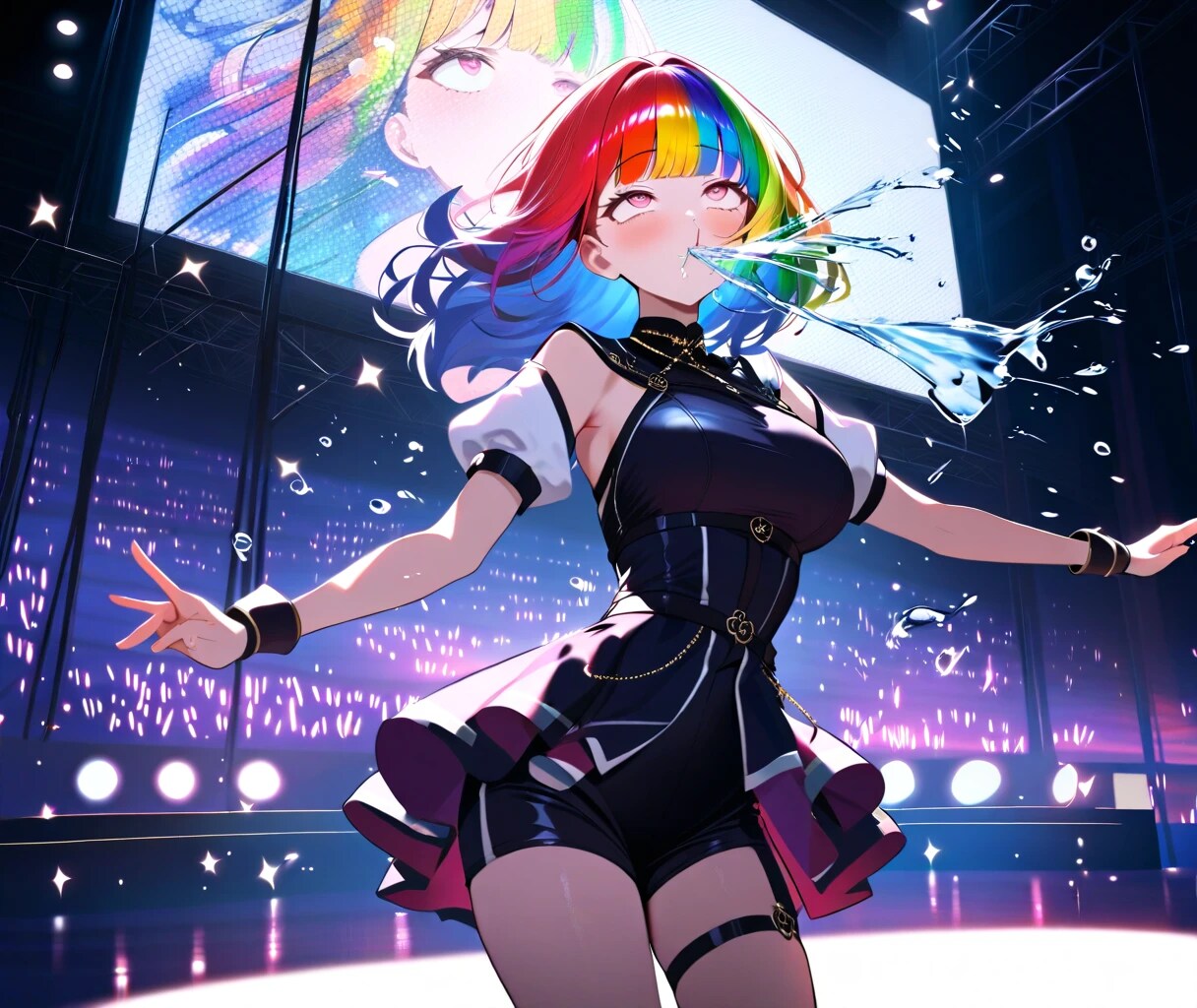 【必須】口から水を吹いている:blowing water out of mouth ※違うプロンプトでも水を吹いていればOK!