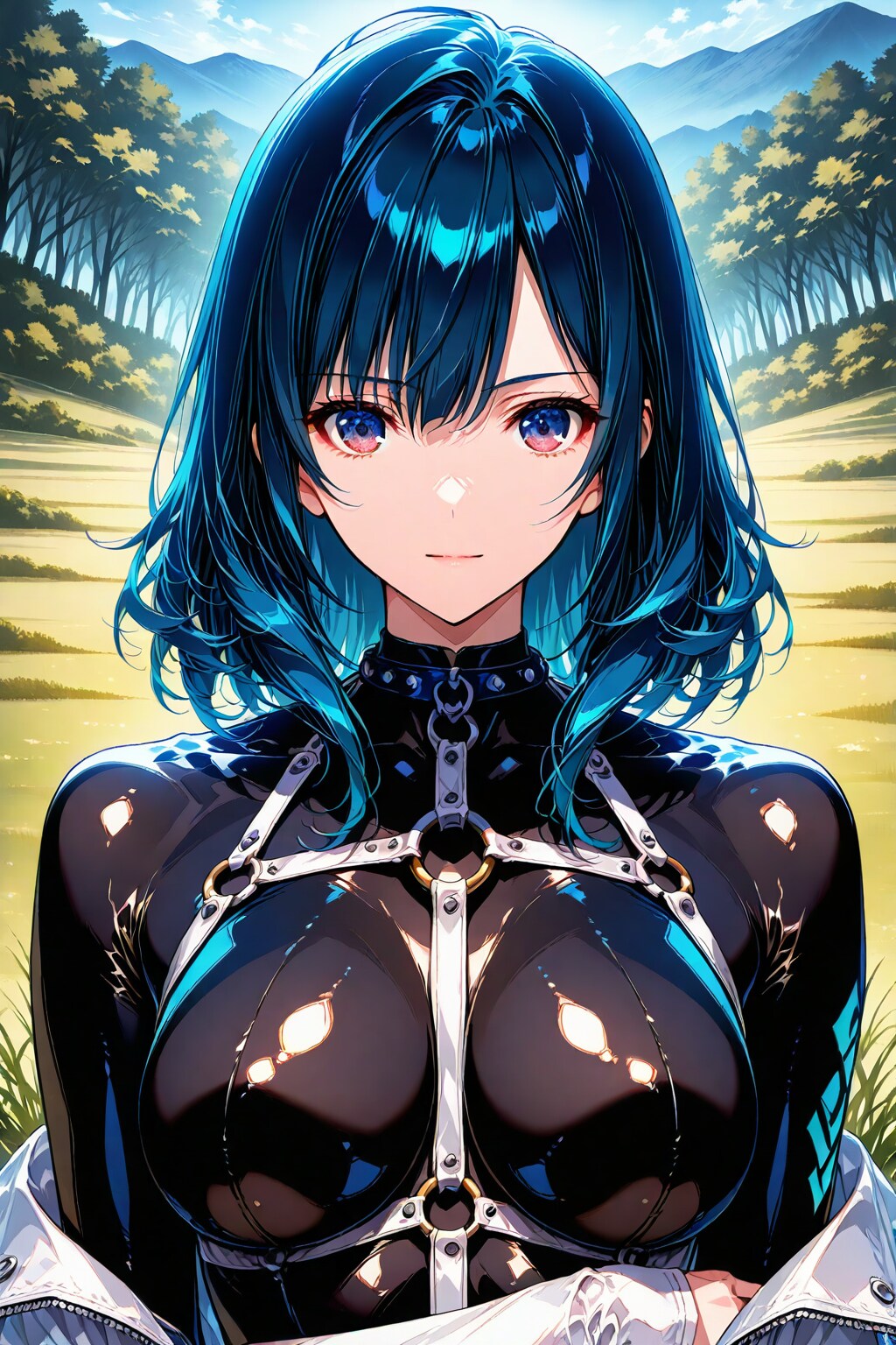 [シーン:春の長野県の草原。桜の花びらが舞い、穏やかな風が吹く中、松本美月(18)がマイクを手に立つ。青い髪が風に揺れ、元気な表情で始まる。カメラが彼女をアップで捉える。]