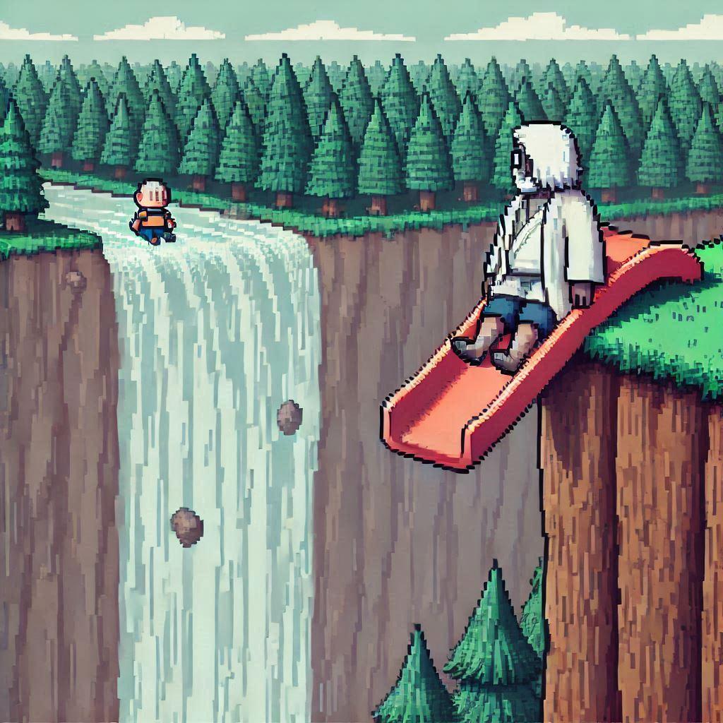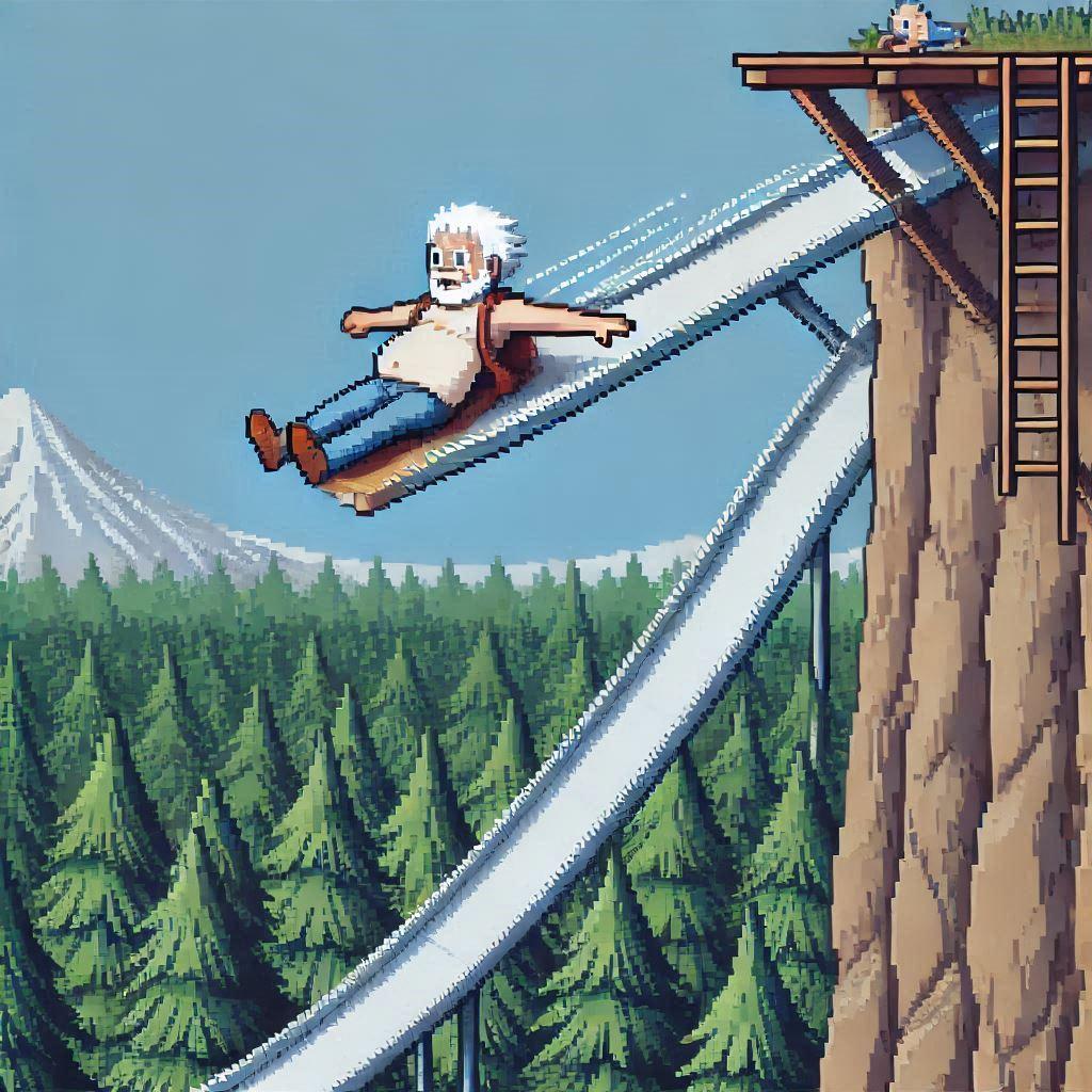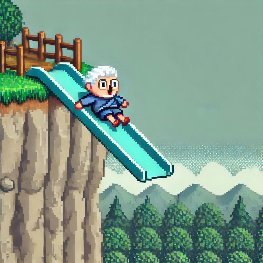 おじさんは滑り台を滑ったのですが、まだ途中までしか出来ていなかったようです。
