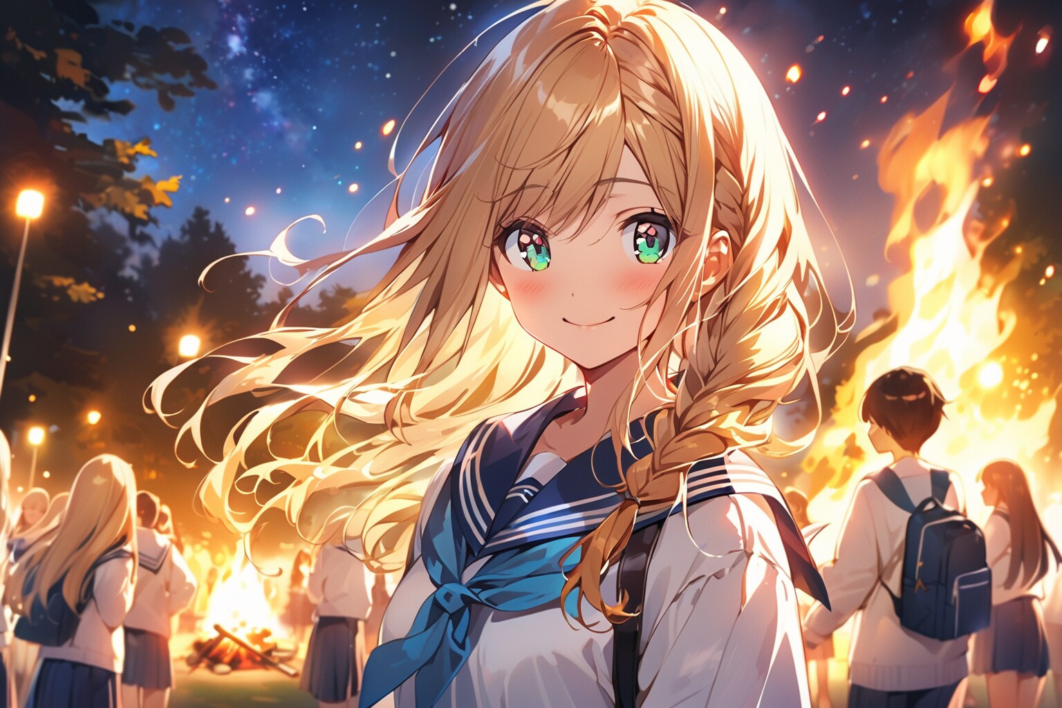 学園祭の最後は炎を囲んで男女入り乱れで踊るのが恒例ですわ!
