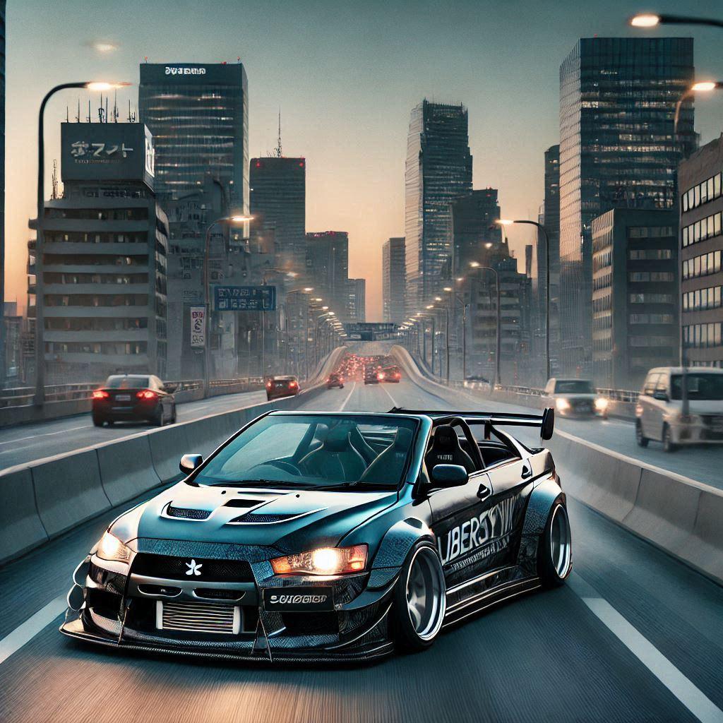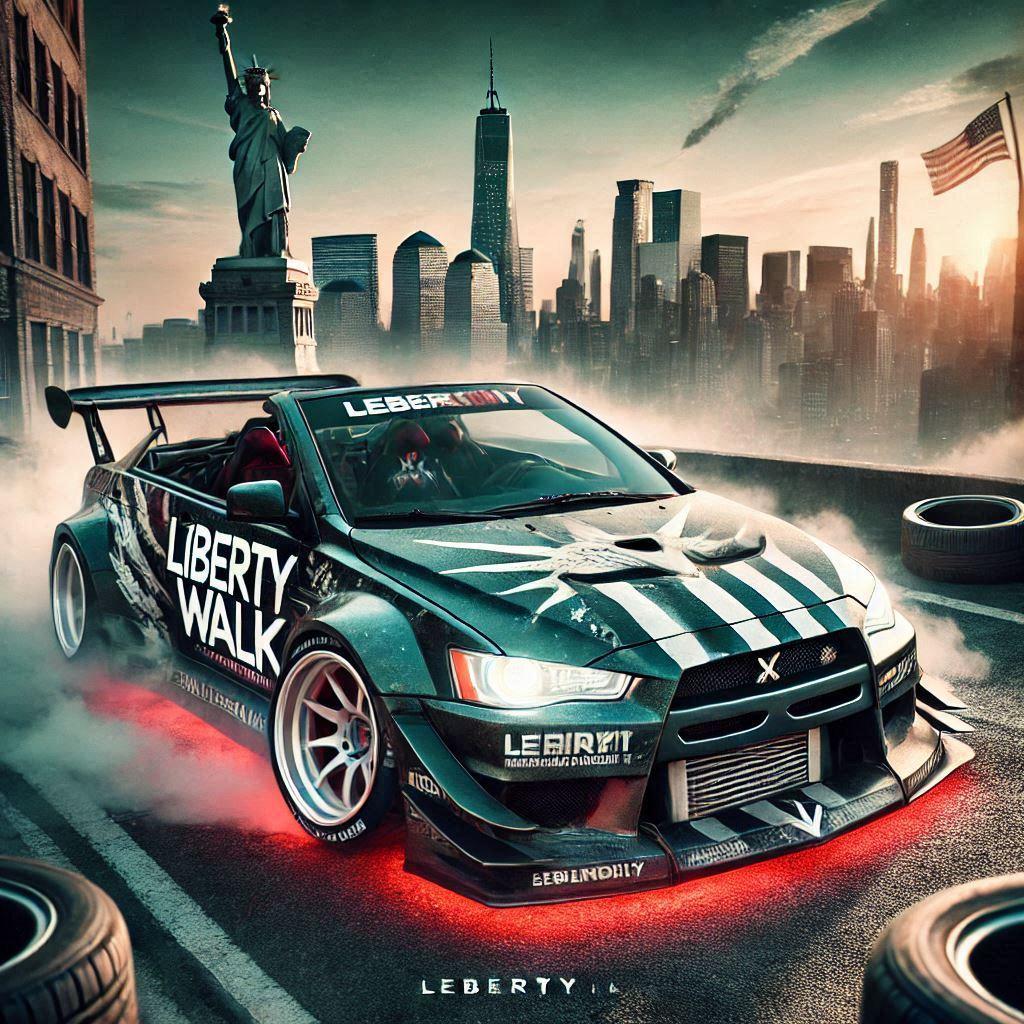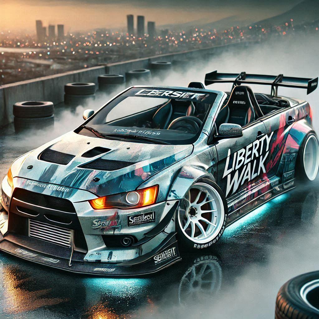 リバティーウォーク三菱ランサーエボリューションオープンカーのドリ車