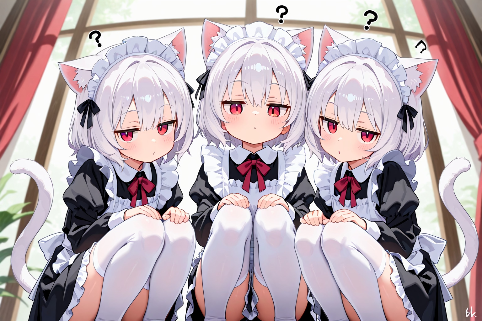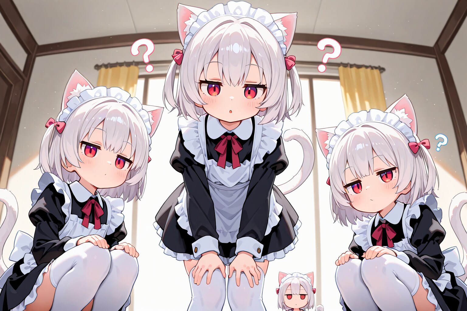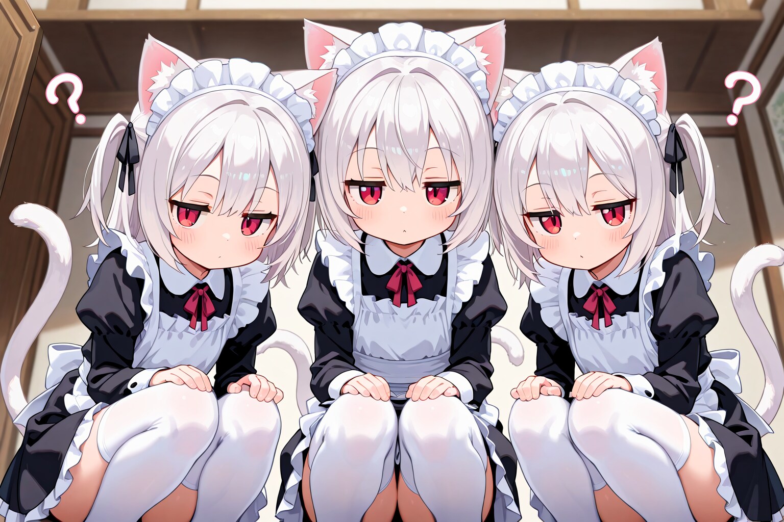 三つ子ネコミミメイドに訝しがられるご主人様。