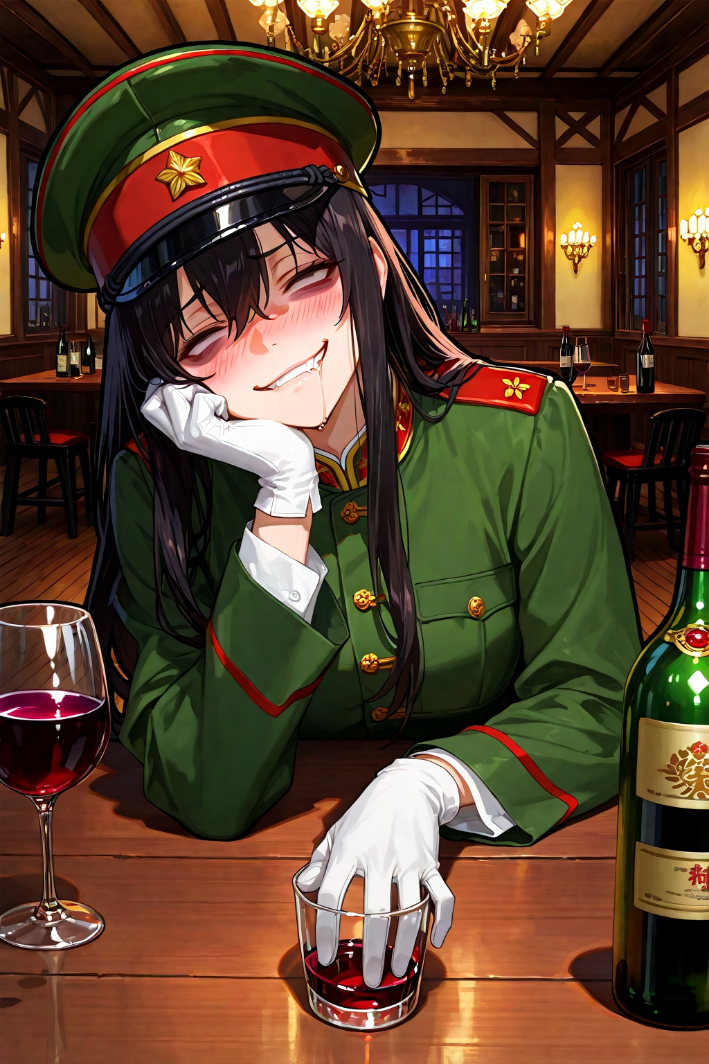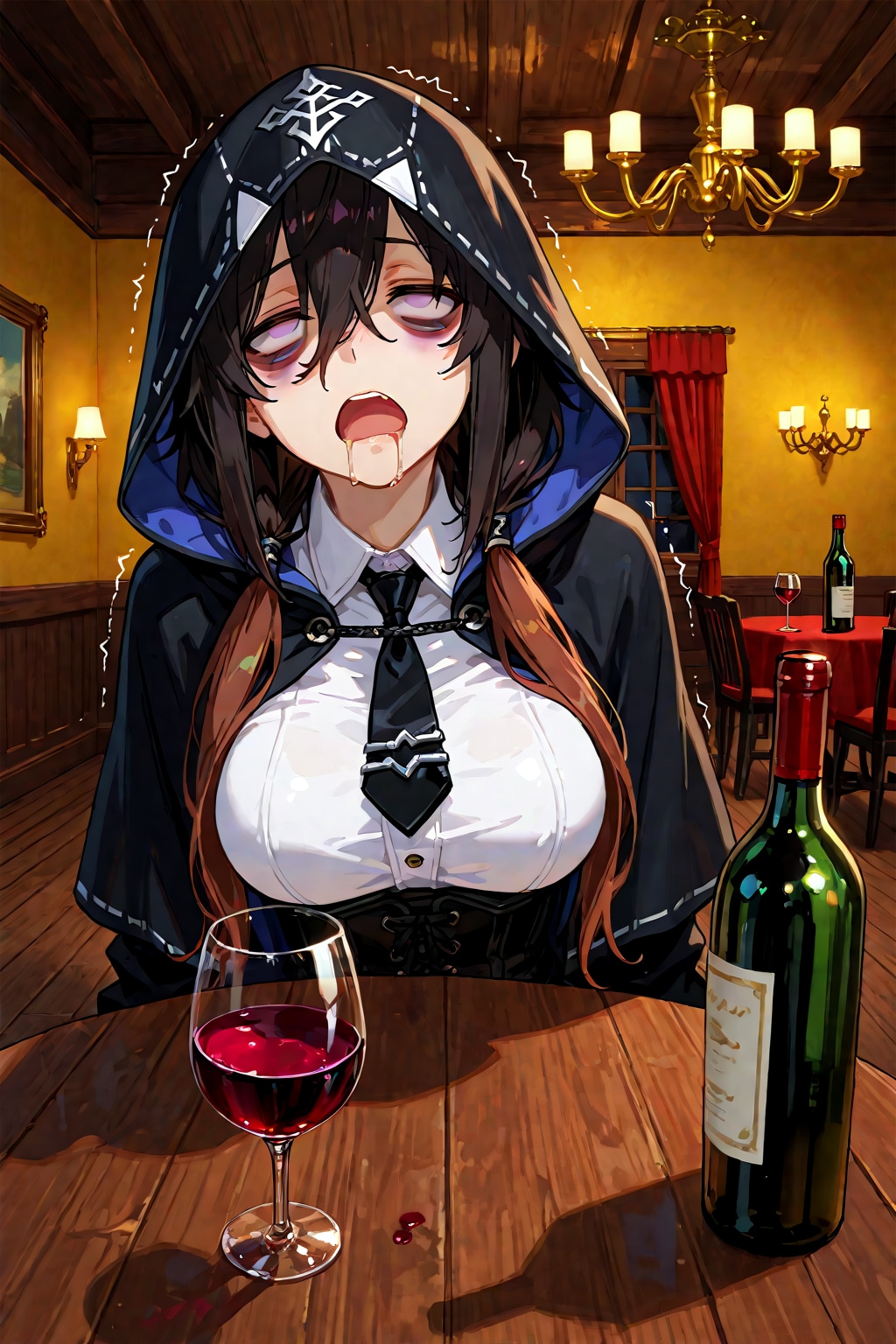 5 そんなアル中四天王を眺めて楽しむ魔王。好物の赤ワインを10本以上空けても全く効かない正真正銘のバケモノ…(ニンゲンの1日の水分摂取量は約2.5L、ワイン10本は7.5L )