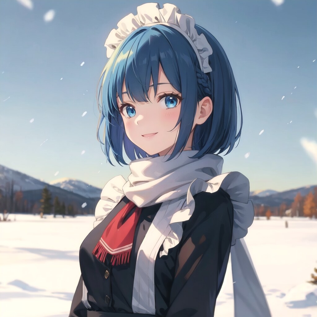 冬企画、参加させていただきます。冬服でマフラーを巻いたあいちゃんです。地元でも久々に雪が降りました。しかし最近雪少ないですね。