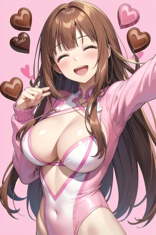 茶髪ロングのお姉さんのバレンタインデーのAIイラストが生成できました。
