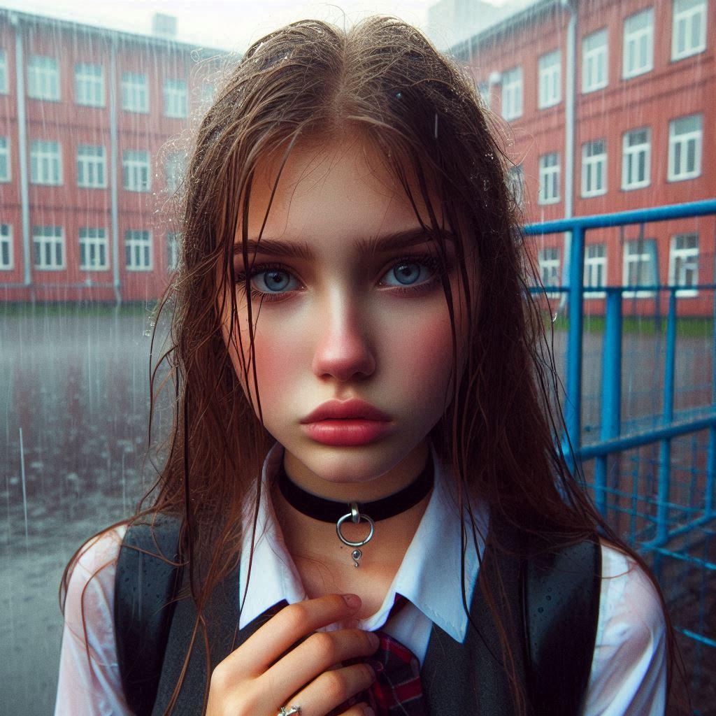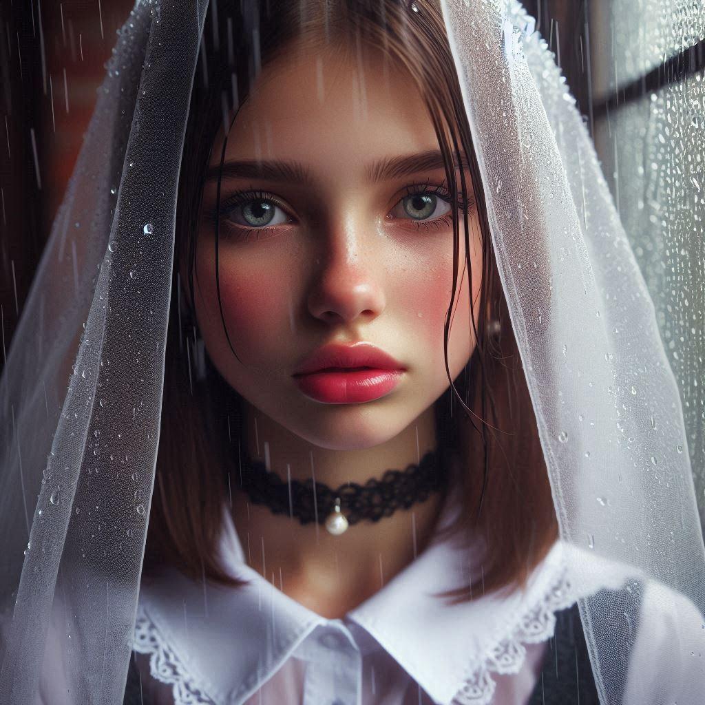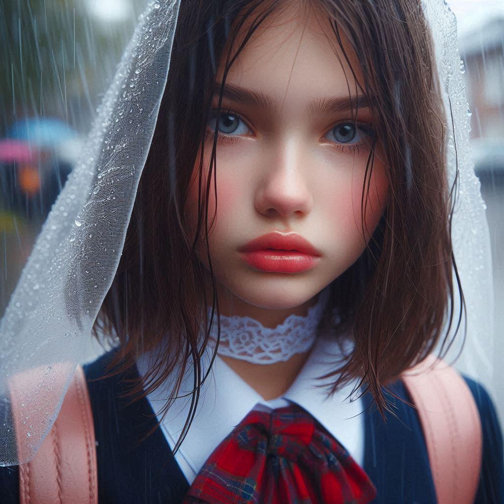 ロシア美人の小学生女子13歳2人寄り添い(ギャル)(台風の中)(豪雨)(大きな唇)(雨を食べる)(下を向く)(チョーカー)(ベール)苦悶表情(全体撮影)(睨む)(カメラ目線)(ヘアピン)(ボブヘアー)