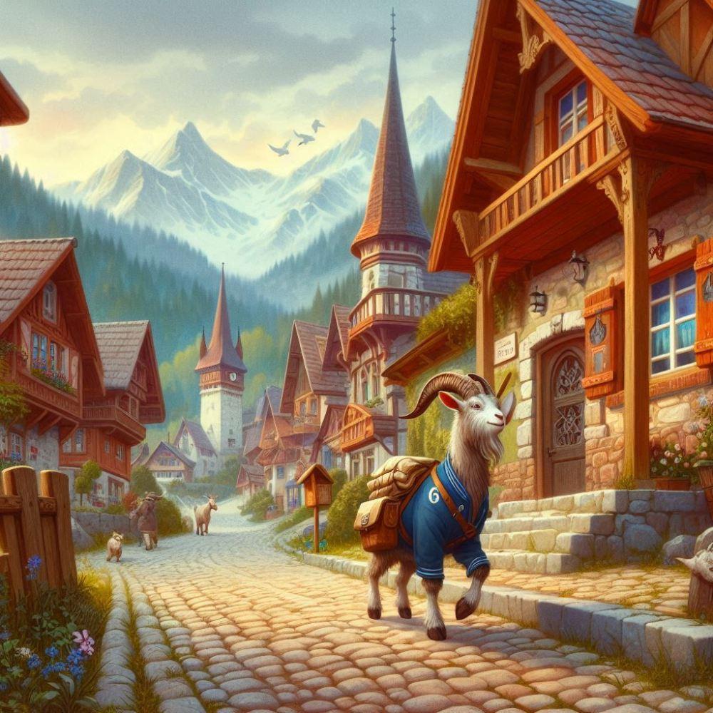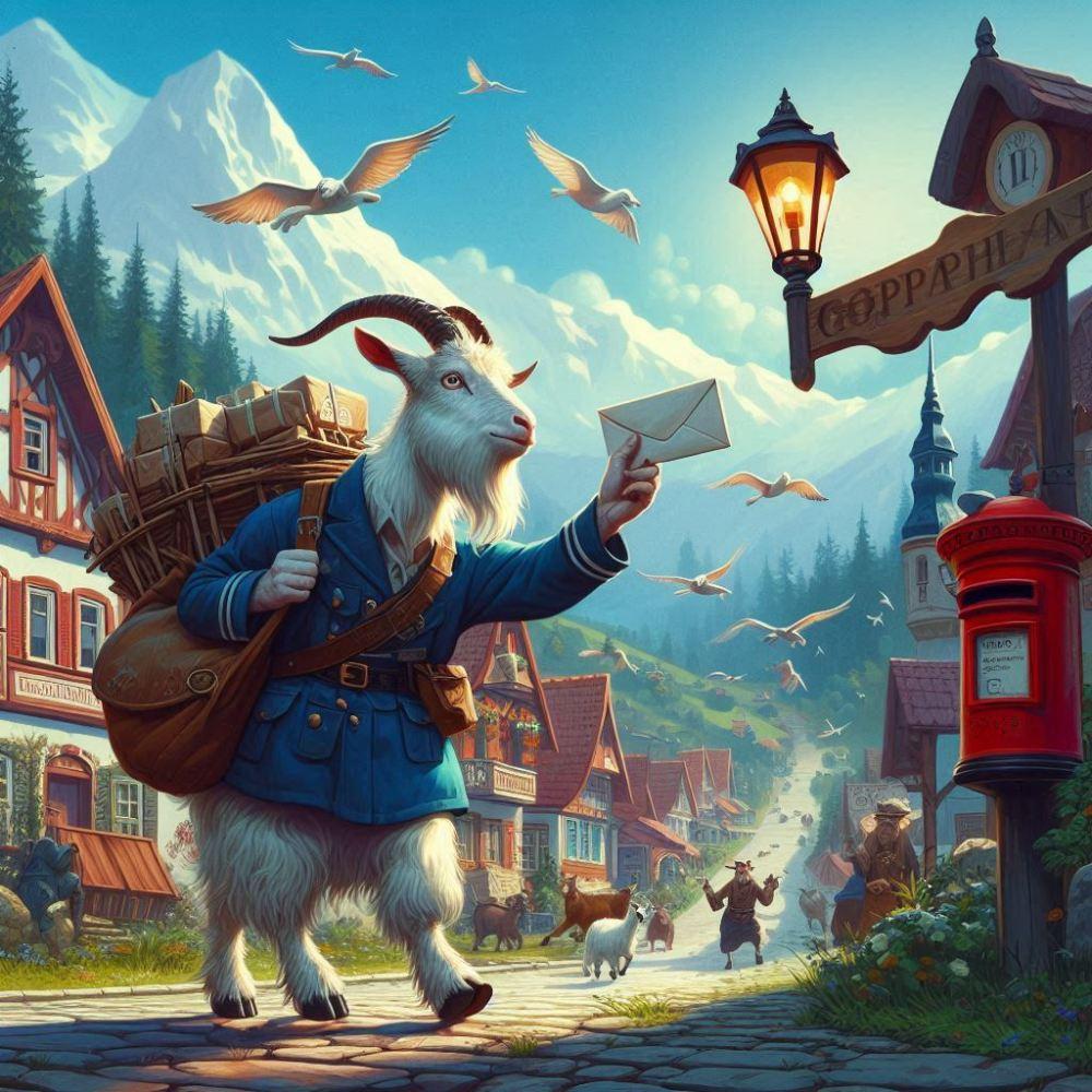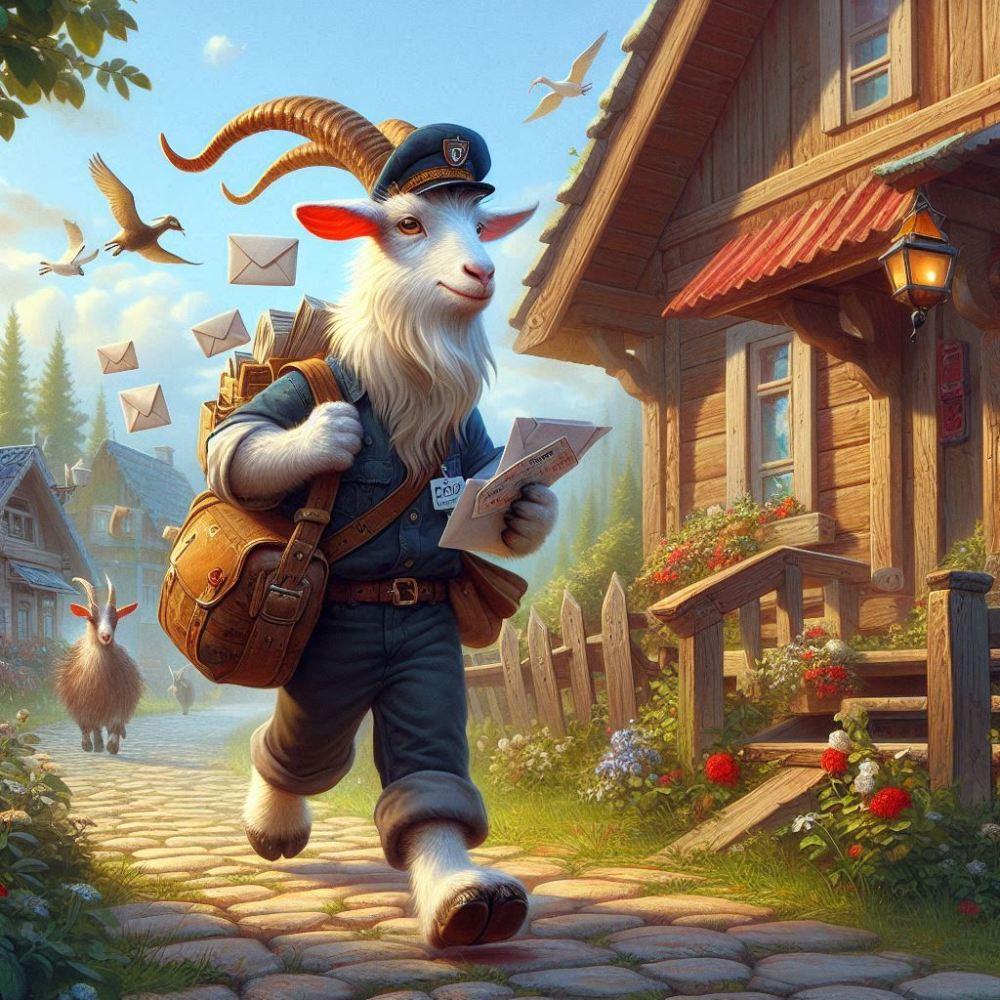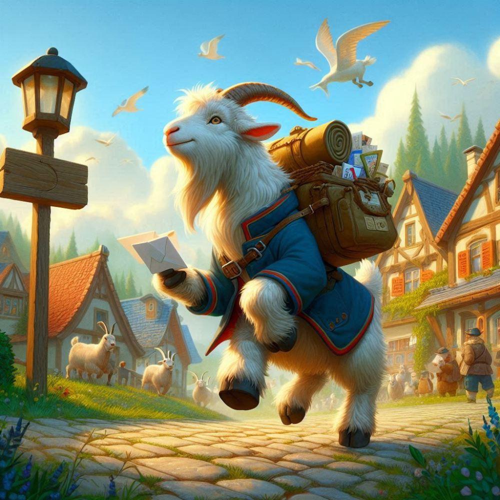 ファンタジー風 田舎で手紙を配達するヤギ郵便配達員