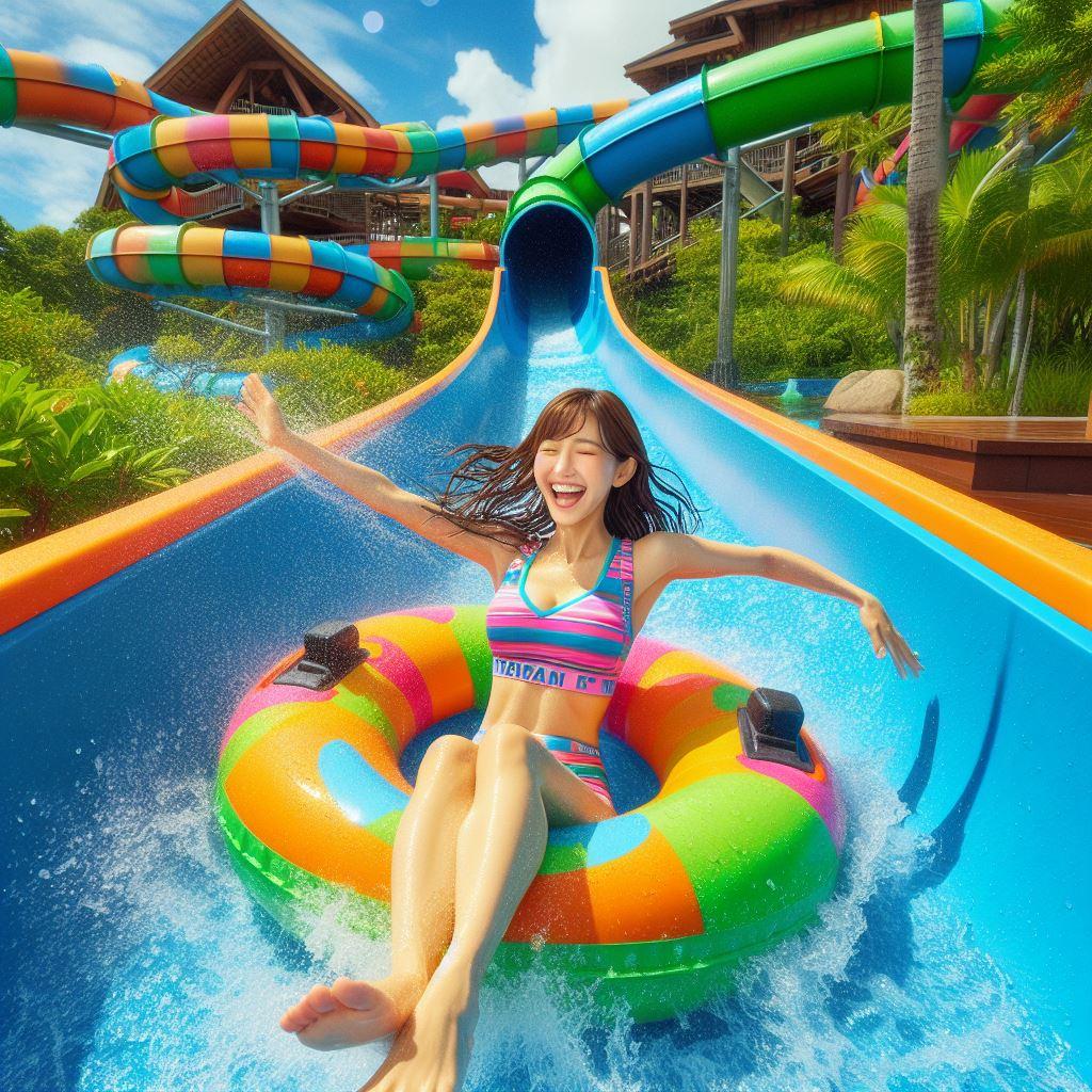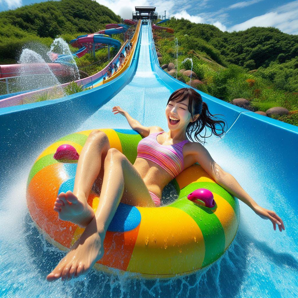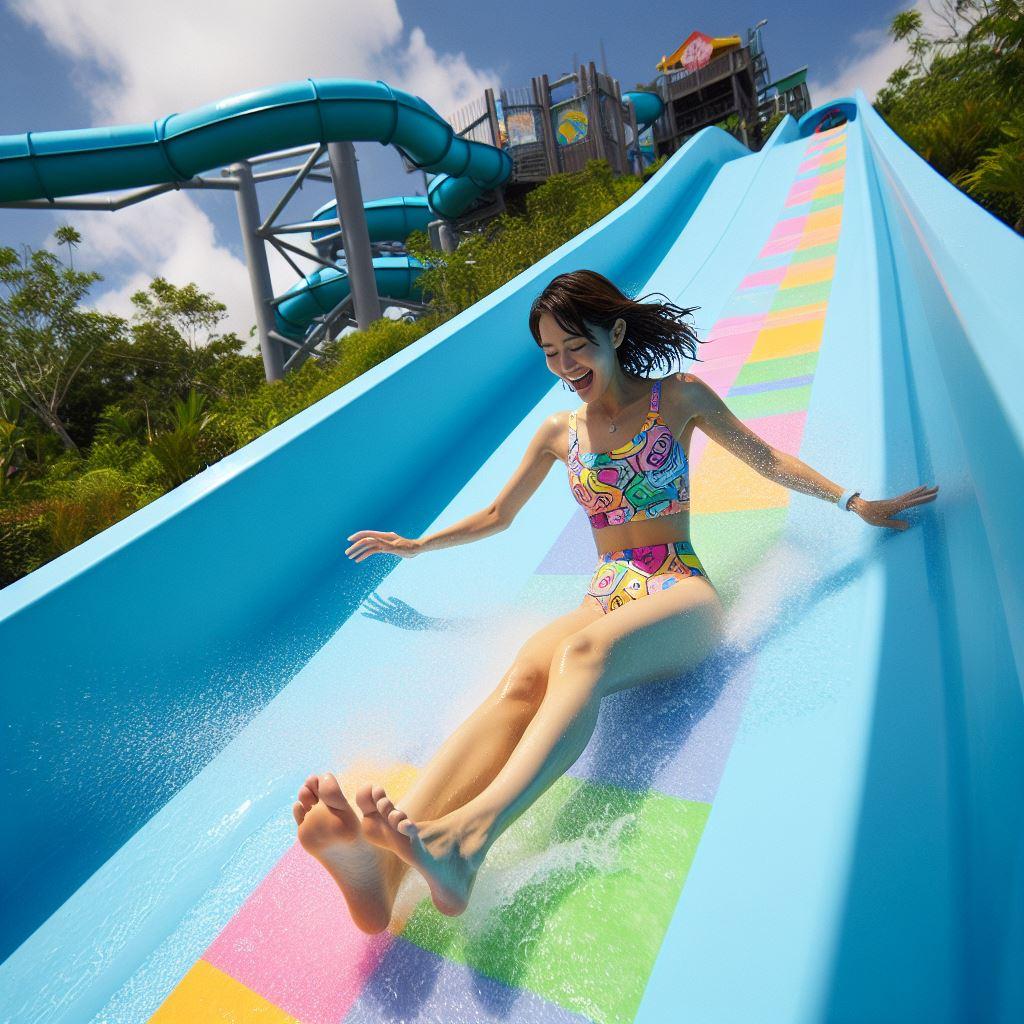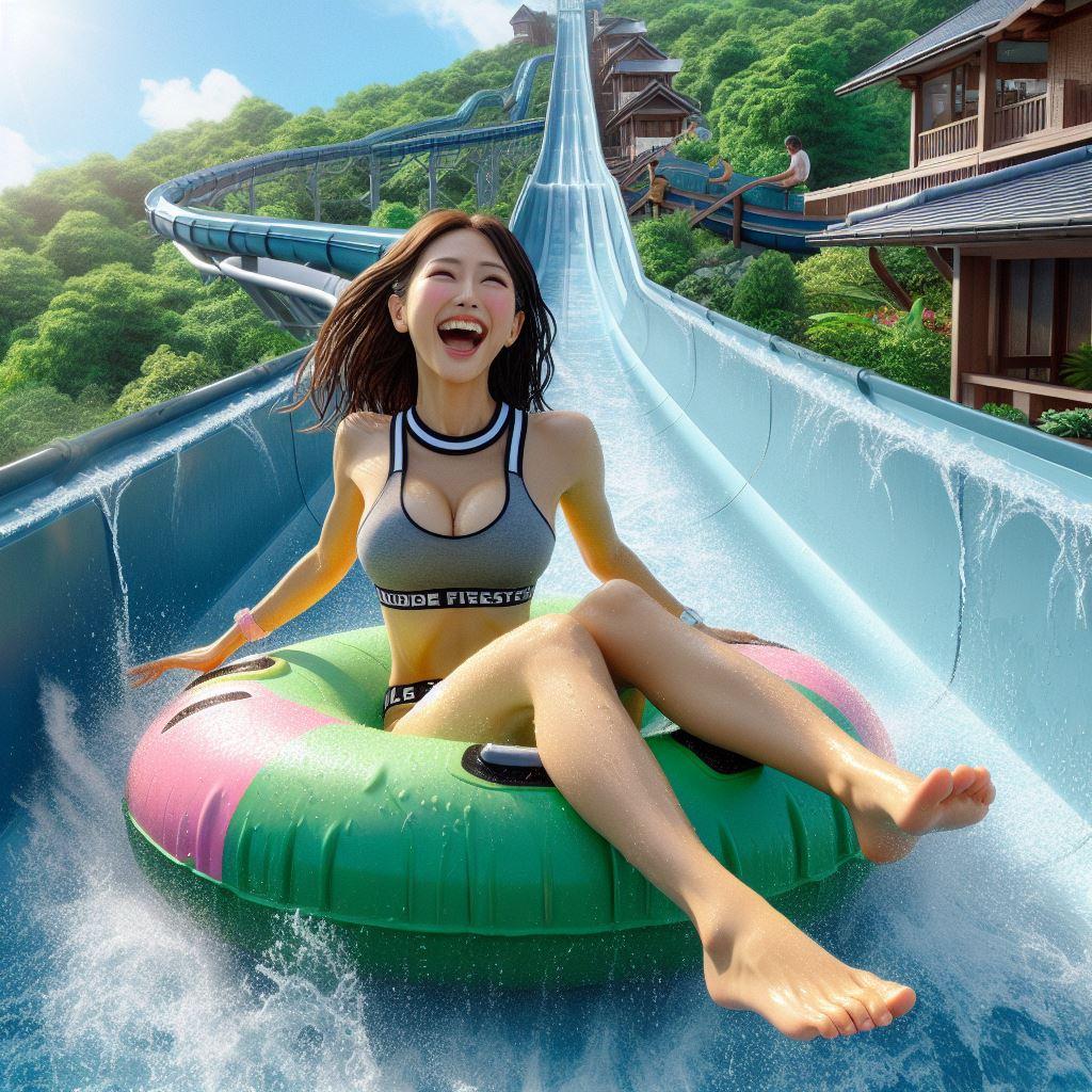 ビキニ水着に厳しいDalle先生の監視の目をかいくぐって何とかウォータースライダー画像を生成してみました😆