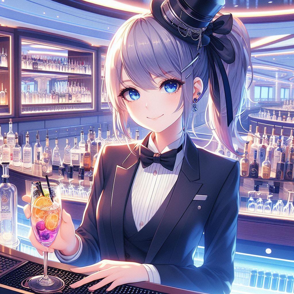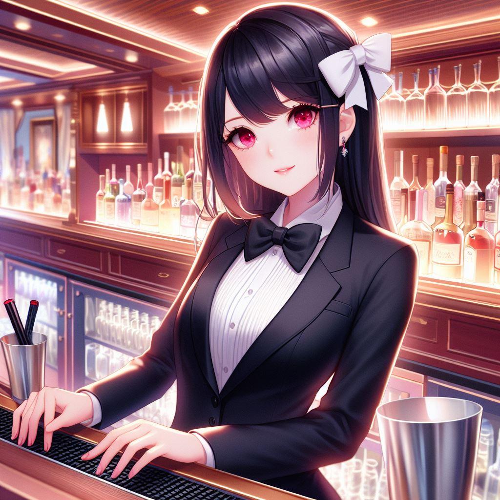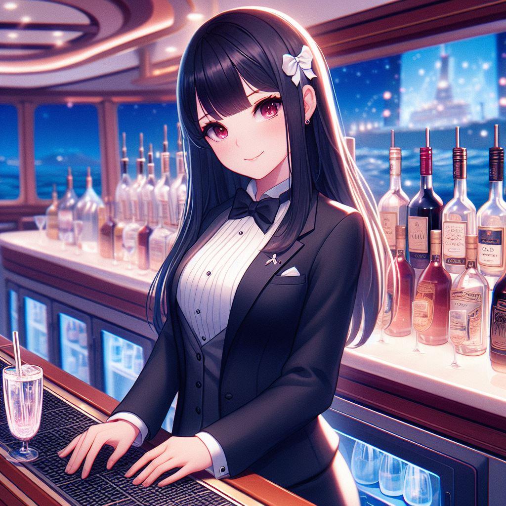 香澄さんと遥さんはバーテンダーで、凪咲さんは特技を活かしてバーでギターをBGM代わりに演奏をしています。そして忙しくなってきたので、急遽スタッフとしても手伝うことに。