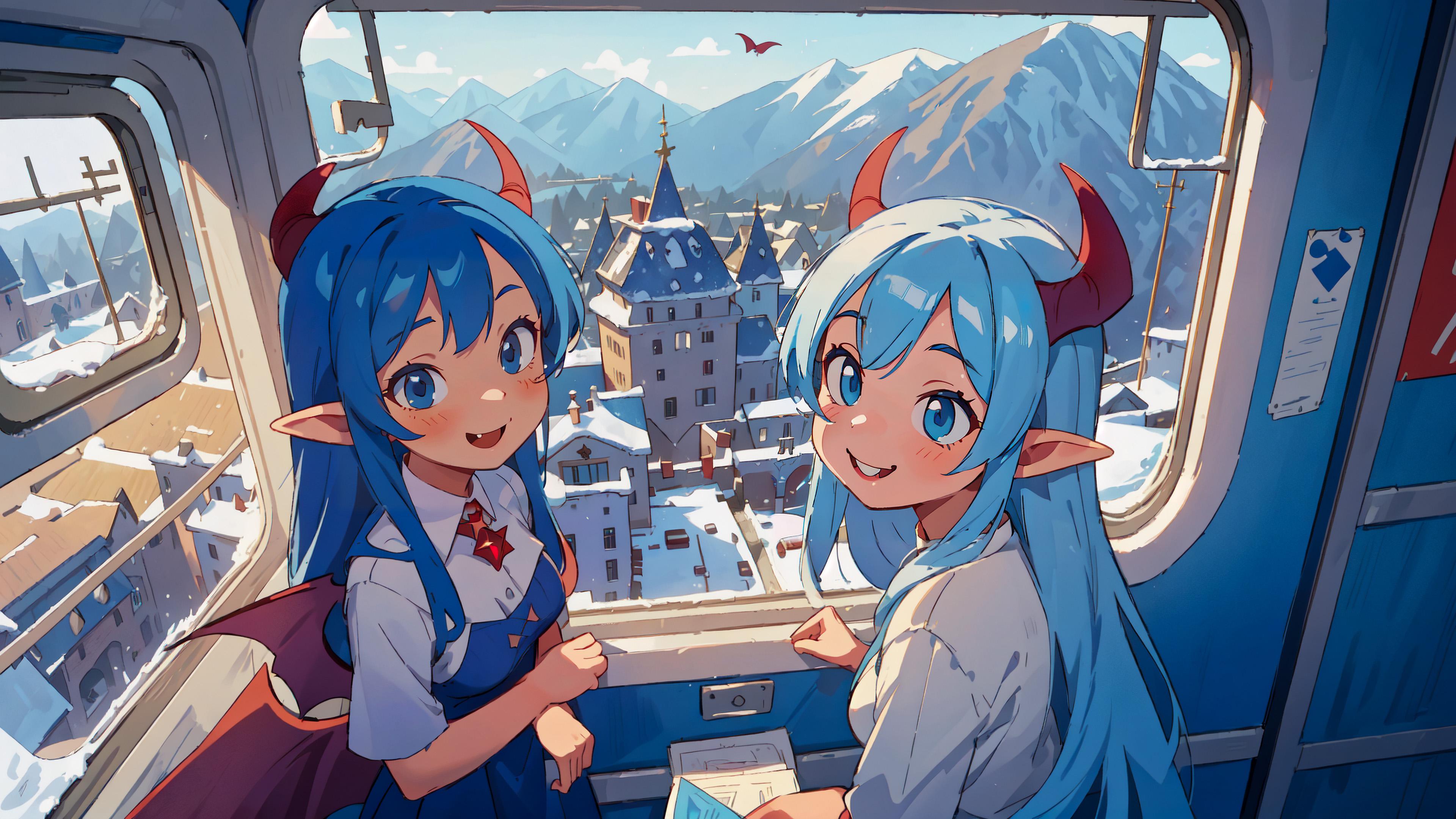 本日より暫くは、姉妹が鉄道に乗って旅行するイラストが続きそうです。