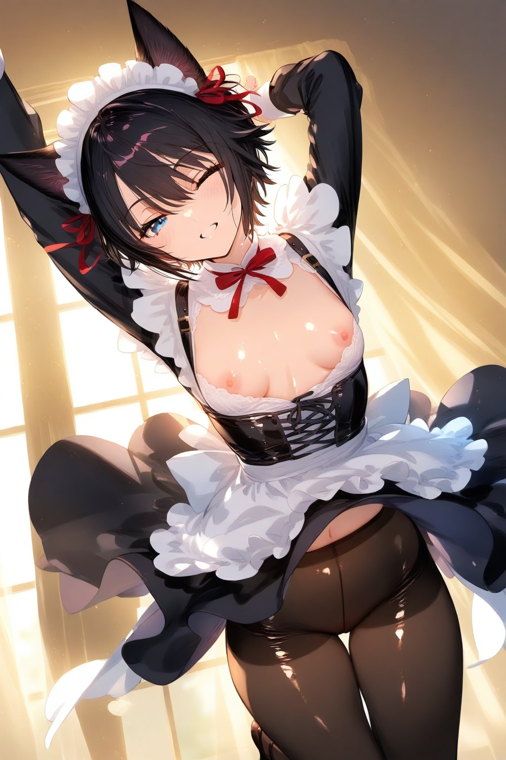 こんな丸出しになるようなプロンプトじゃないと思うんですが…dynamic pose?
