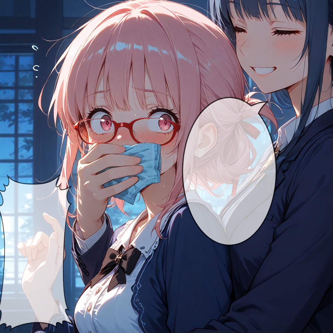 構図がなかなか出なかったのでLoRAを使用してます。あと、鼻まで覆っていないのは大目に…
