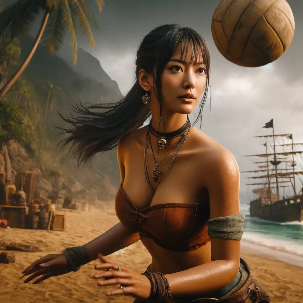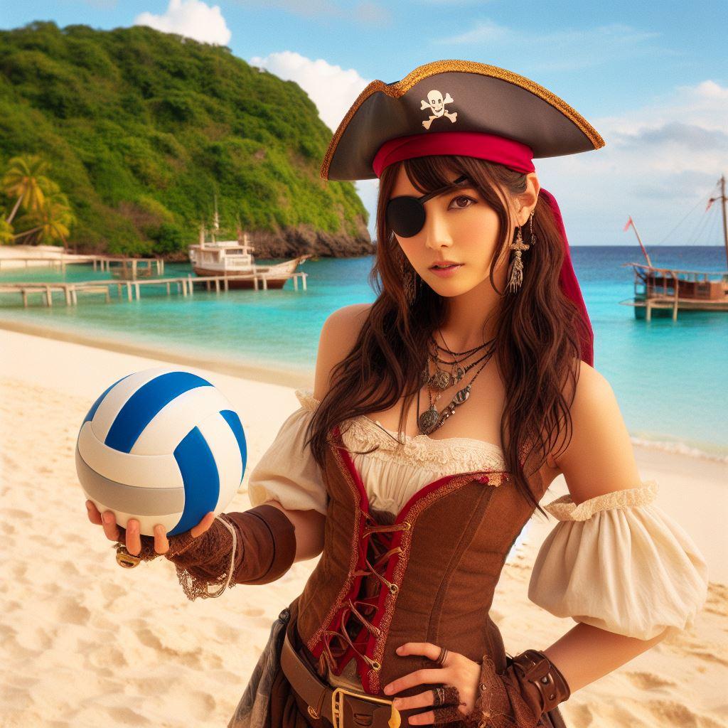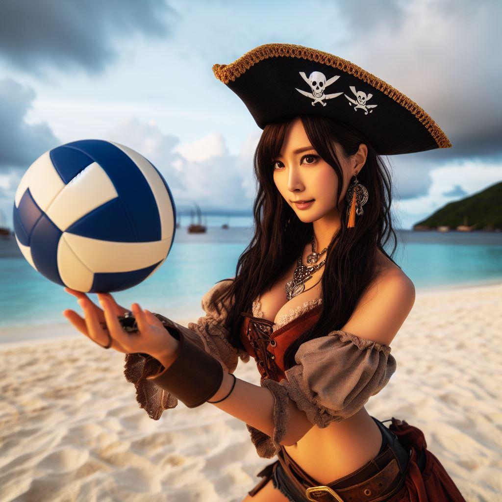 ビーチバレーを楽しむ海賊