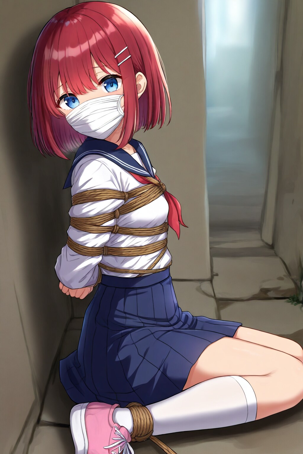 まずは厳重に縛り、胸元をはだけさせ、スカートも捲る。良いですねぇ、扇情的です。
